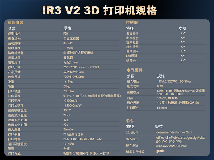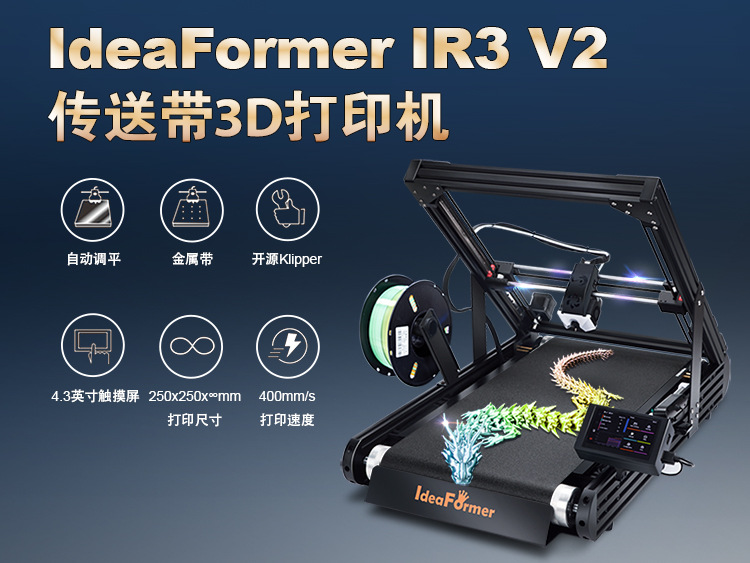 IdeaFormer IR3 V2 неограниченный Z-осевой высокоточный автоматический уровень высокоскоростной конвейерный 3D-принтер
