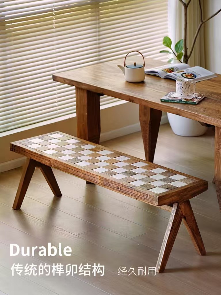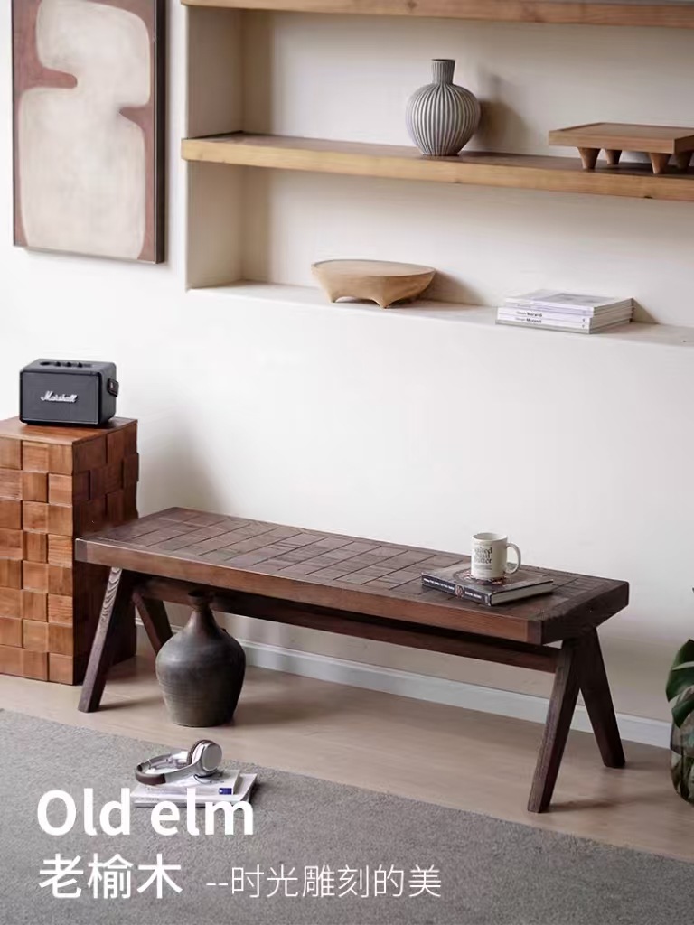 Тихий стиль, старая ясеневая деревянная длинная скамейка, китайское жилье, гостиничный шахматный обеденный стул, стул для смены обуви в прихожей