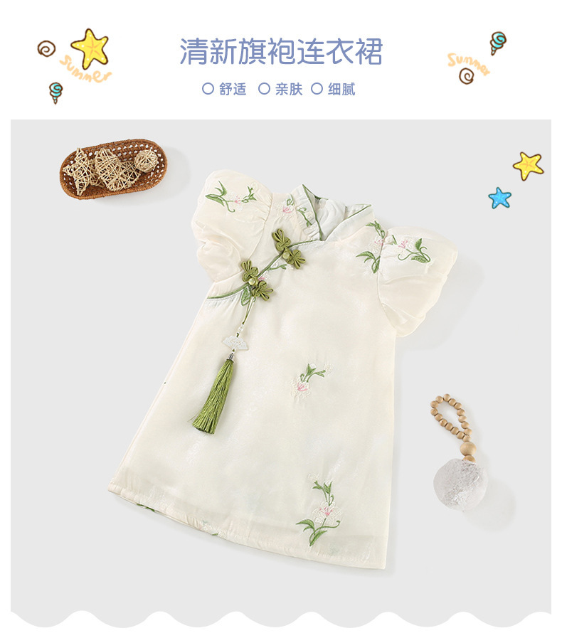 Новое платье чонгсам для девочек 2025 летнее новое детское антикварное платье с бахромой