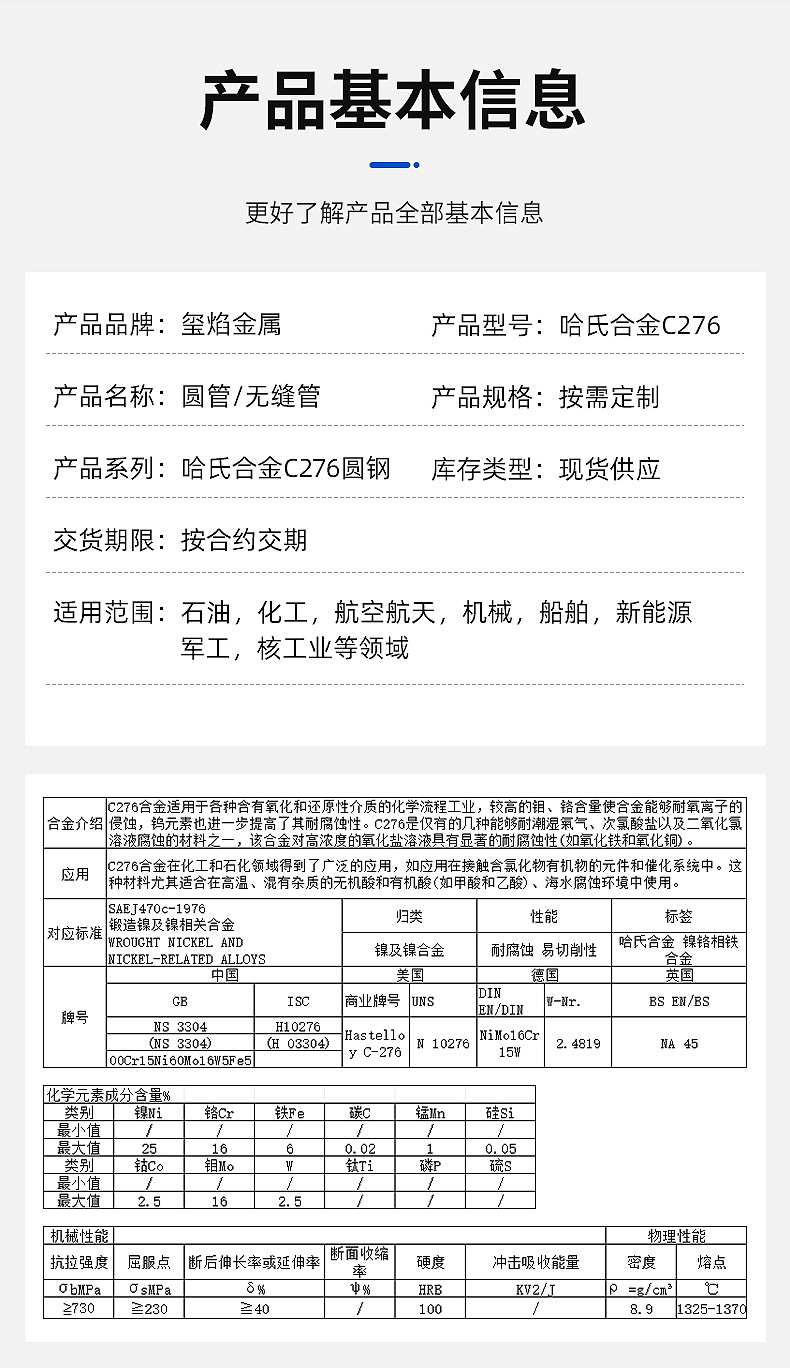 Номер товара Hastelloy c276