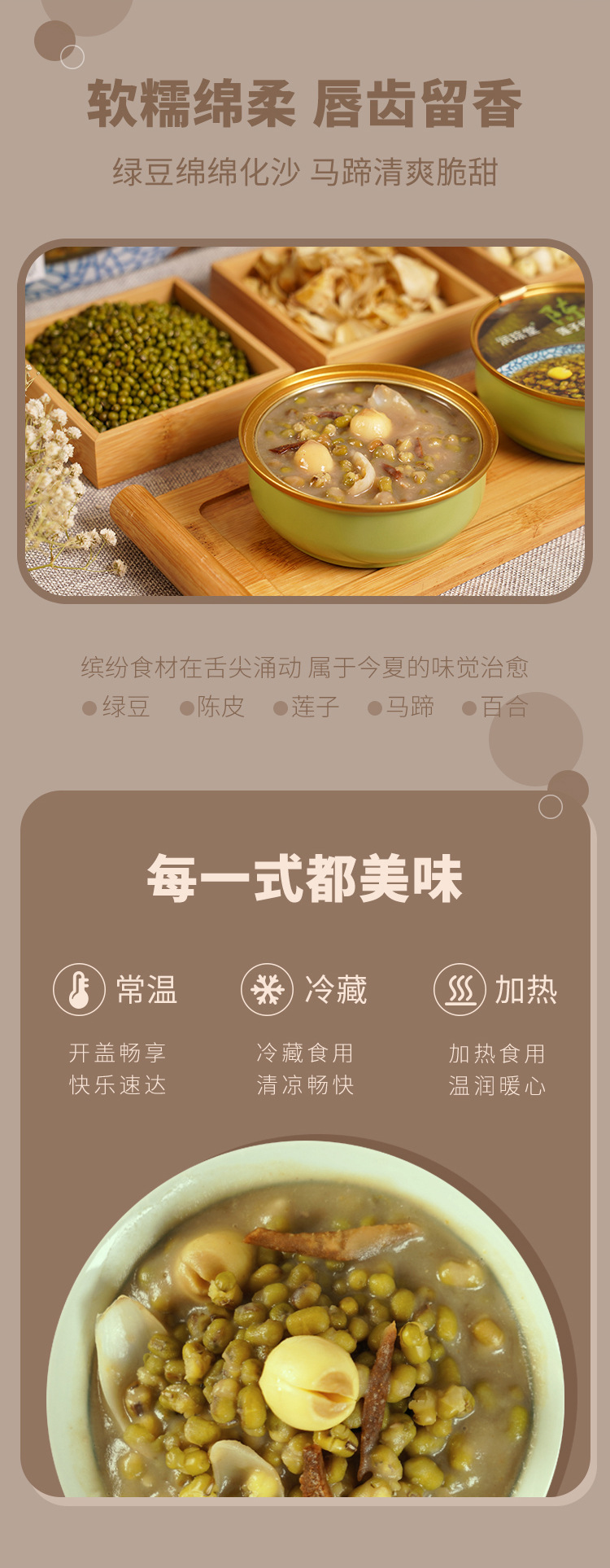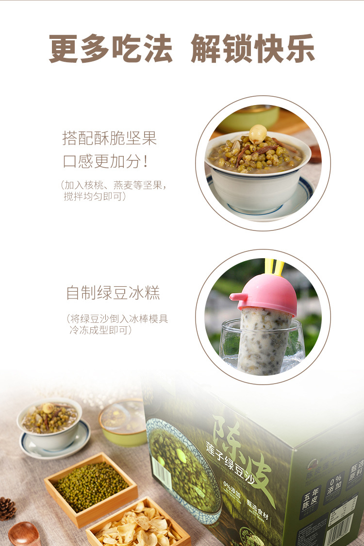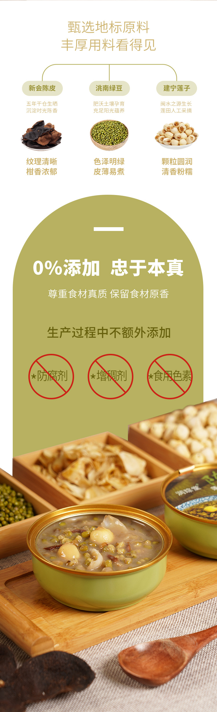 Основные сырьевые материалы Water, mung beans, rock sugar, lotus seeds, tangerine peel, dried lilies