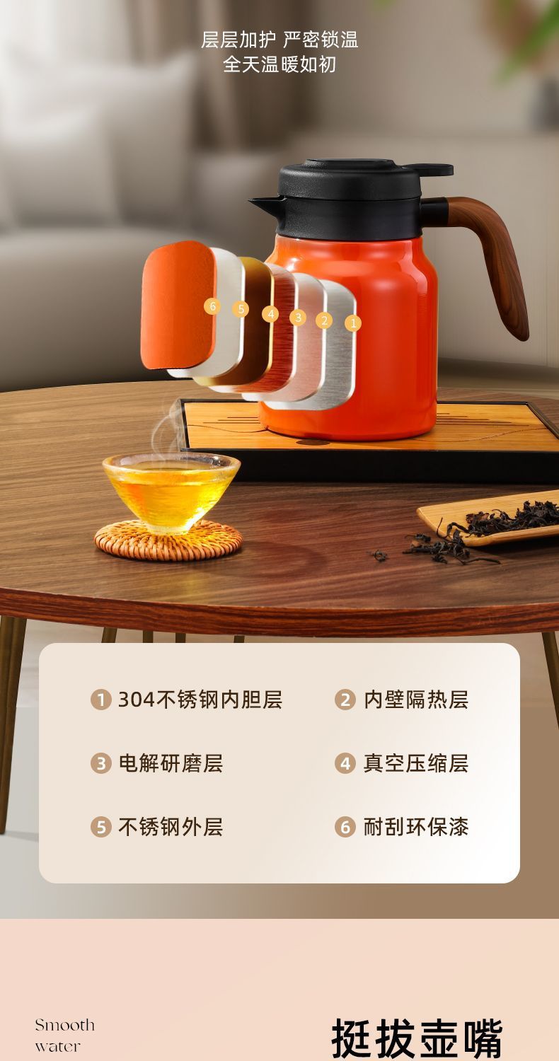 Чайник из нержавеющей стали с теплоизоляцией, большой объем, для дома и офиса, старый белый чай