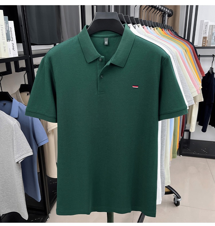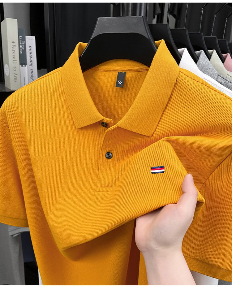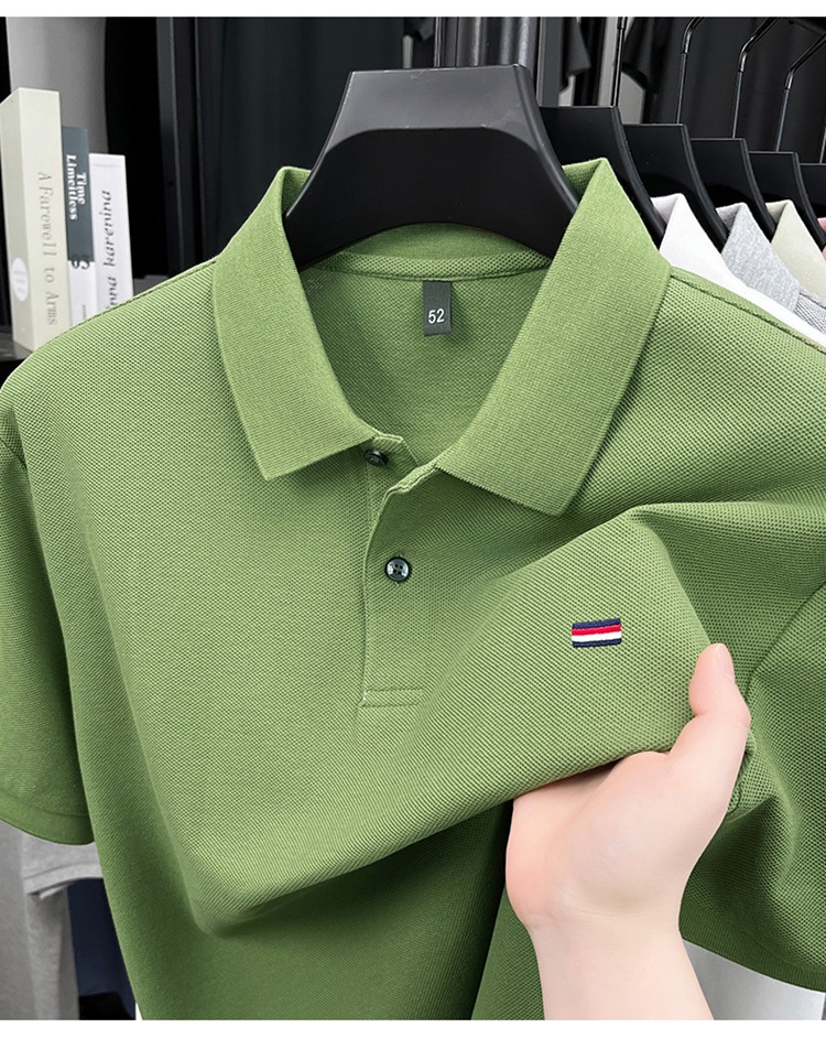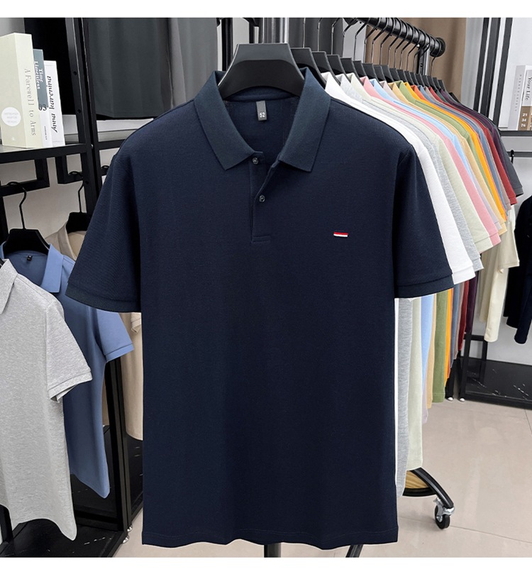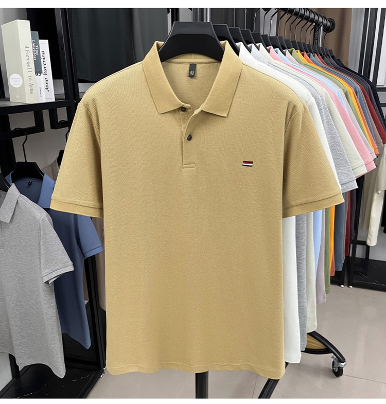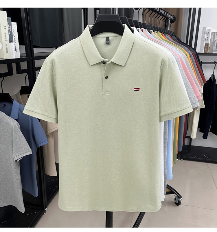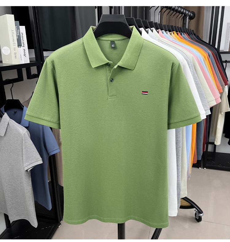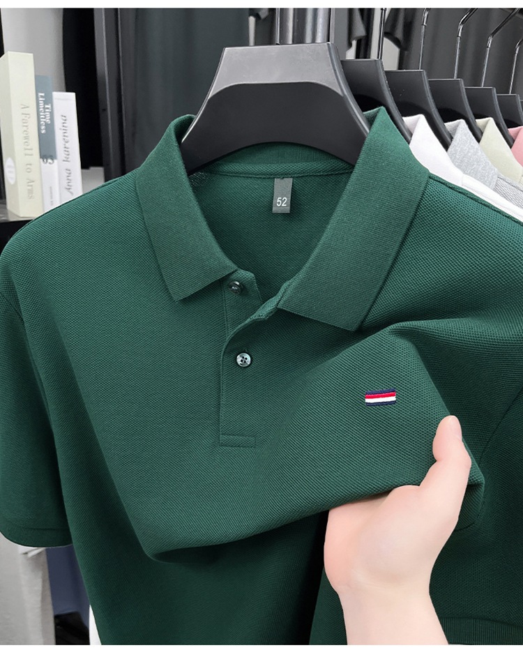 Летняя рубашка поло с воротником для мужчин из 100% хлопка, деловая повседневная футболка с вышивкой для стильных мужчин среднего возраста