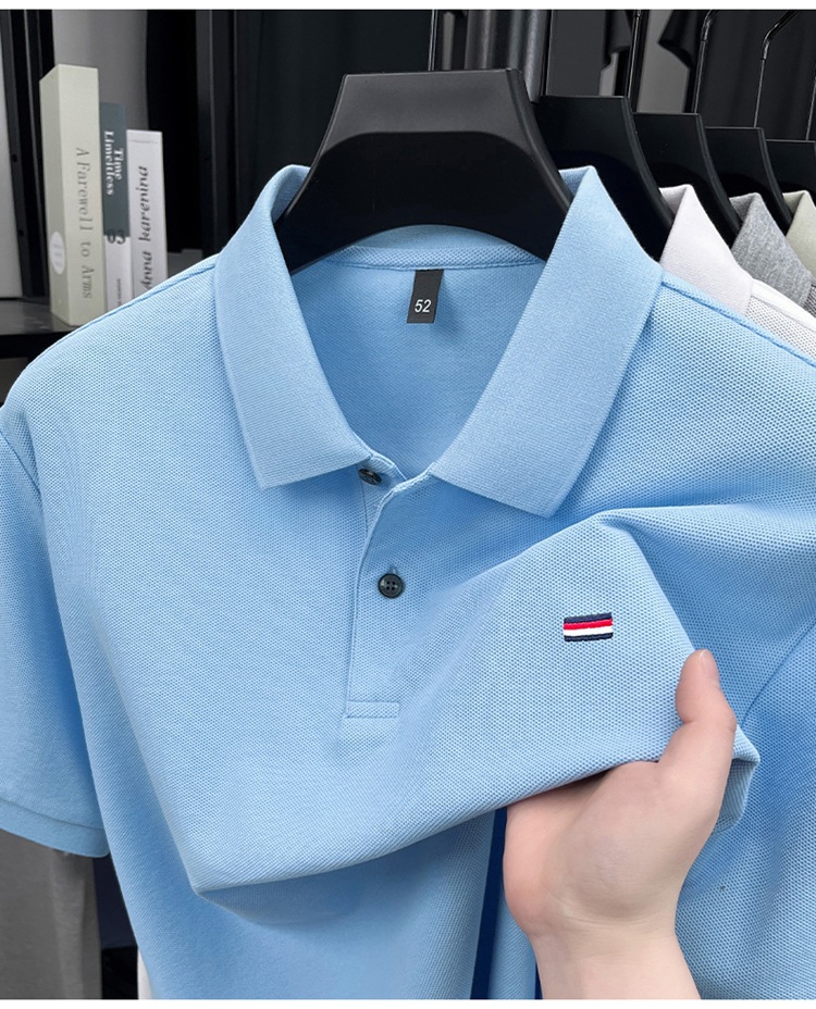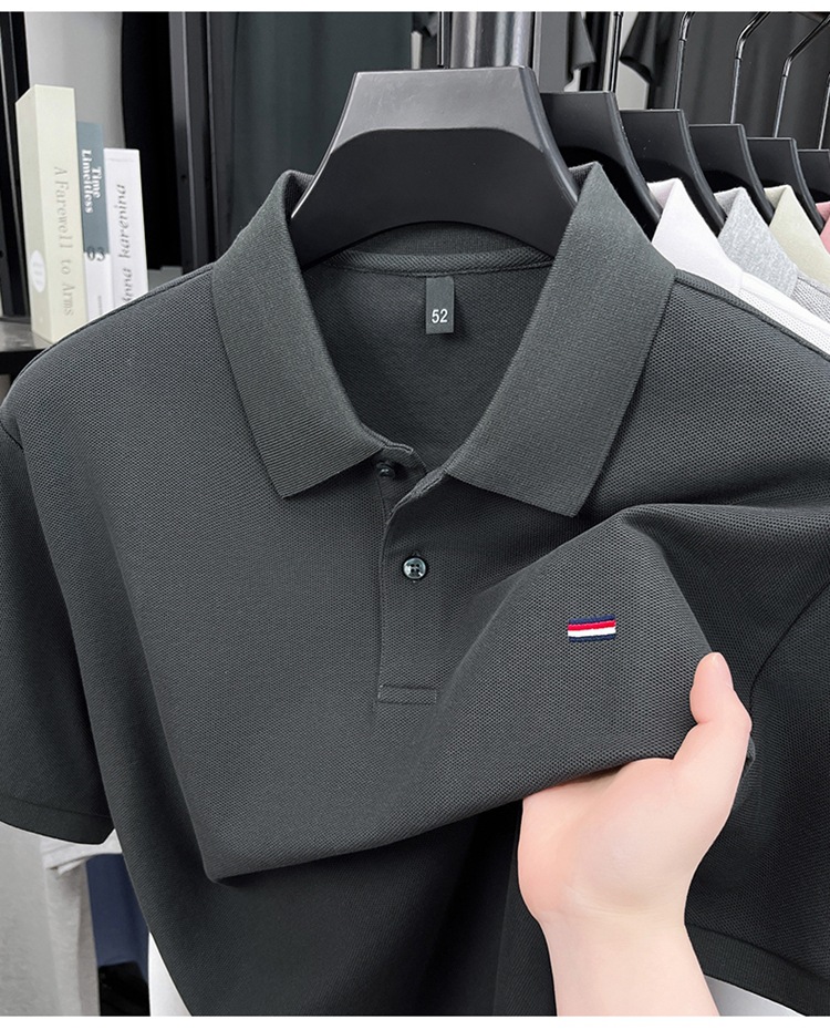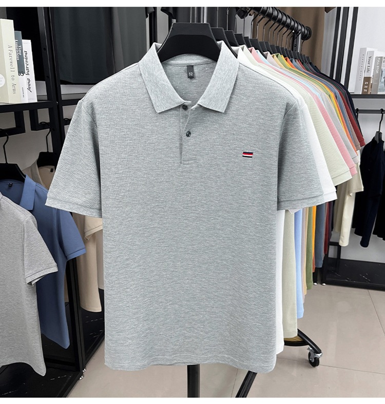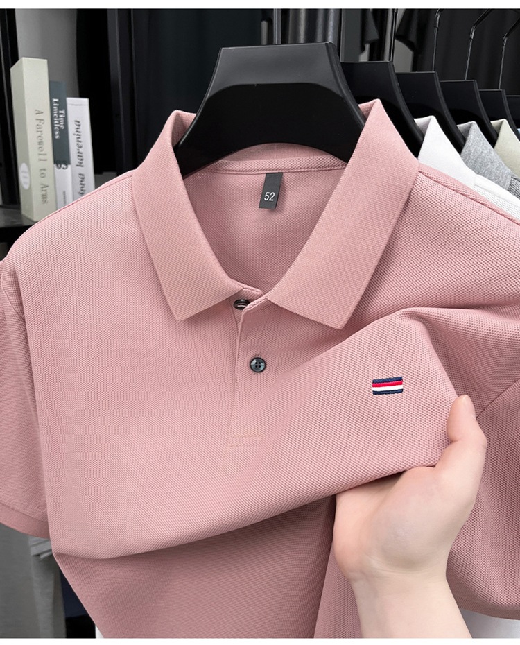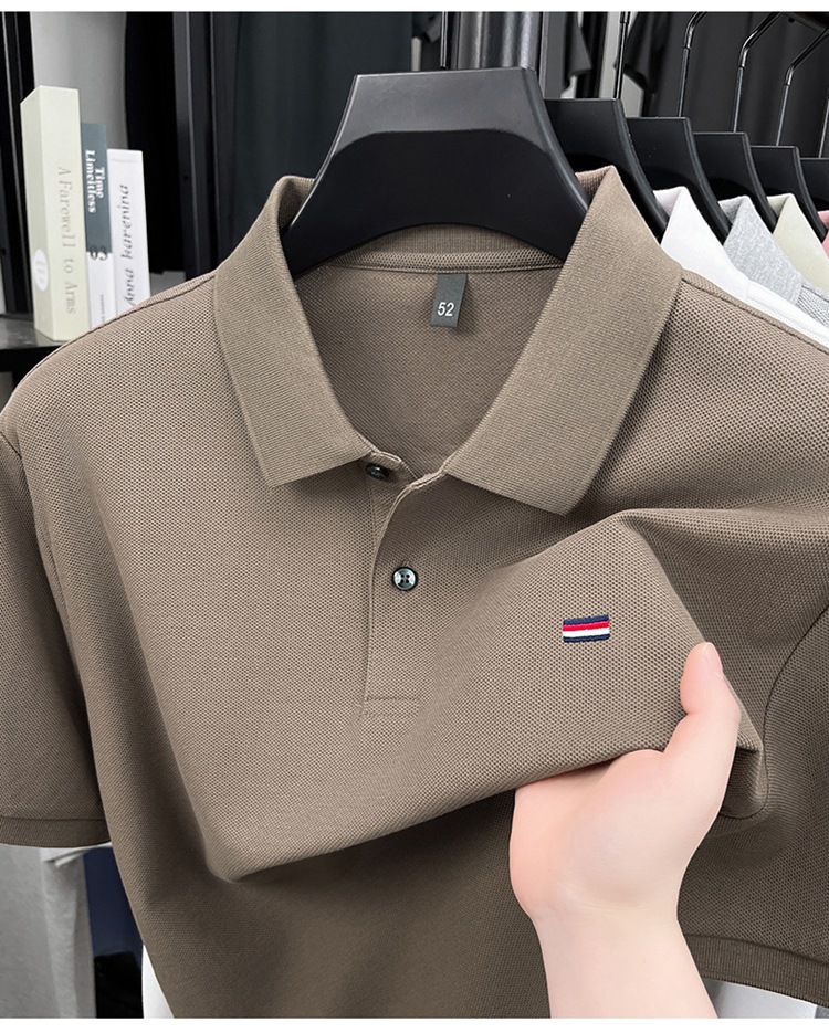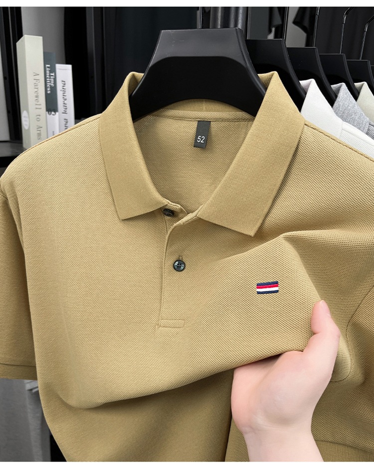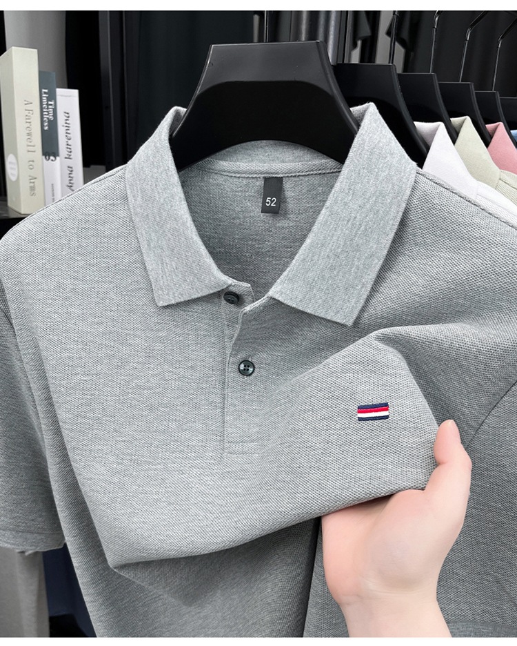 Летняя рубашка поло с воротником для мужчин из 100% хлопка, деловая повседневная футболка с вышивкой для стильных мужчин среднего возраста