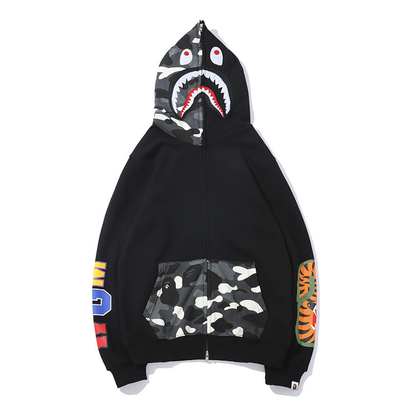 Европейская и американская кросс-бордовая костюм камуфляж модный бренд акула голова 3D печать худи модный свитер на молнии Хэллоуин