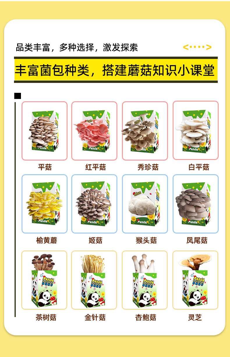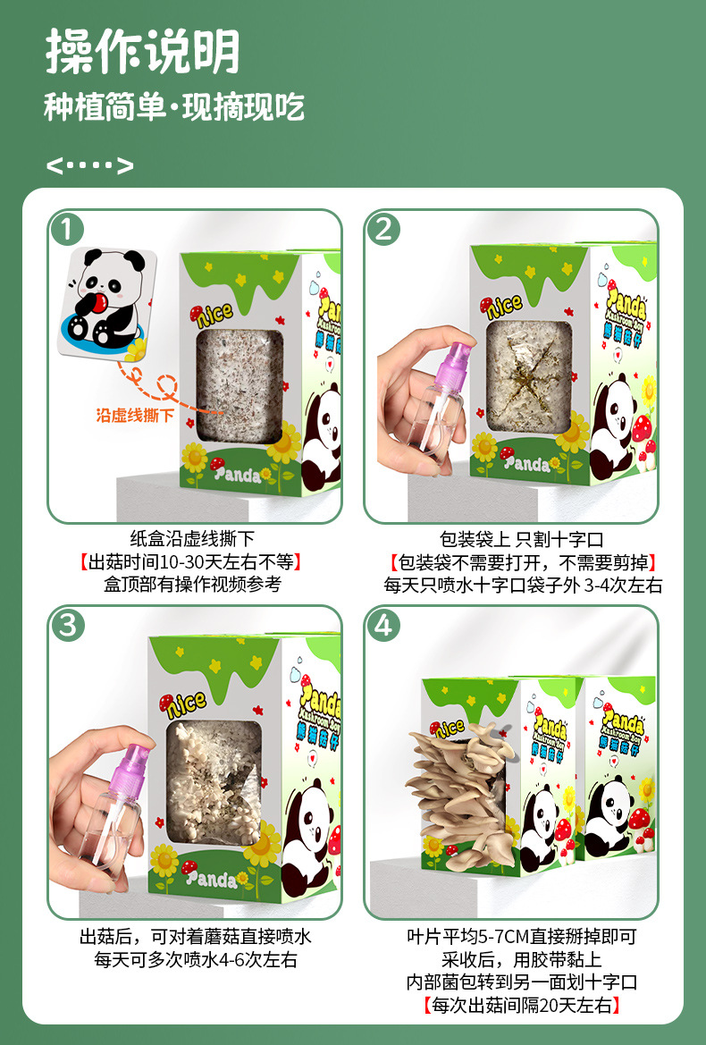 Подарочный набор грибов, пакет для посадки устрицы, съедобный гриб, панда, зеленое растение.