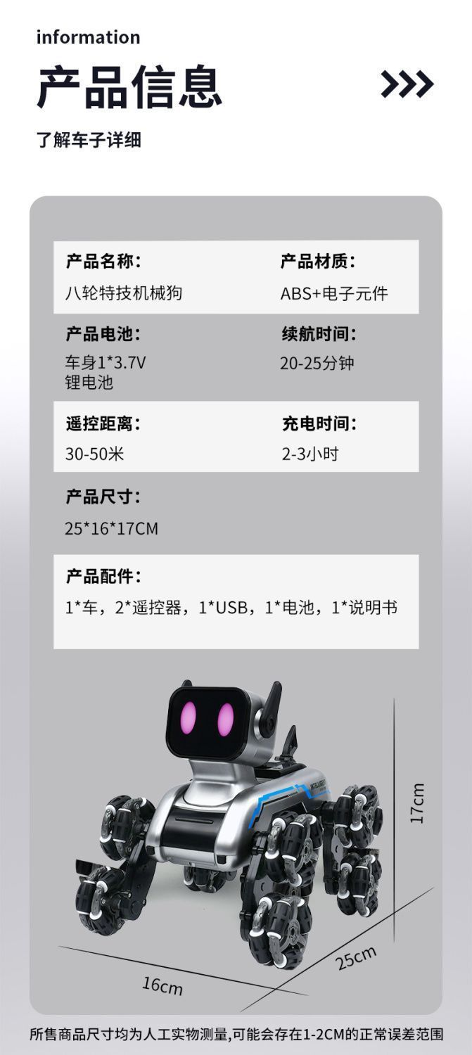 Механическая восьмиколесная собака-робот с дистанционным управлением, электрический игрушечный автомобиль для детей