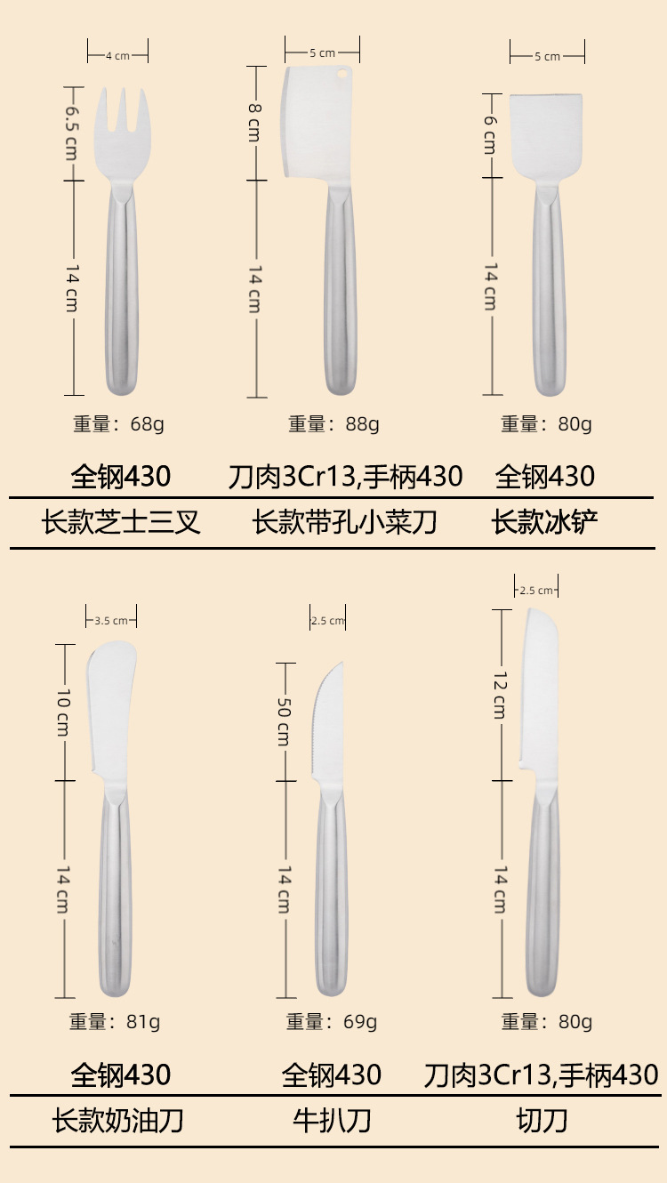 Категория продукта Cheese knife, steak knife, small kitchen knife, fork