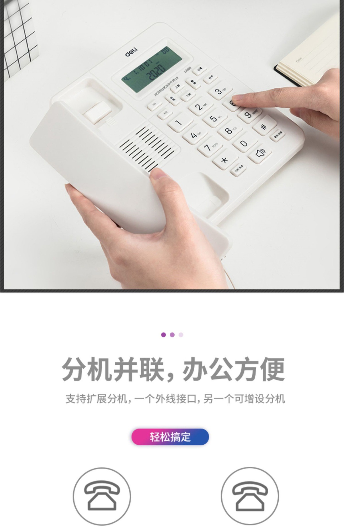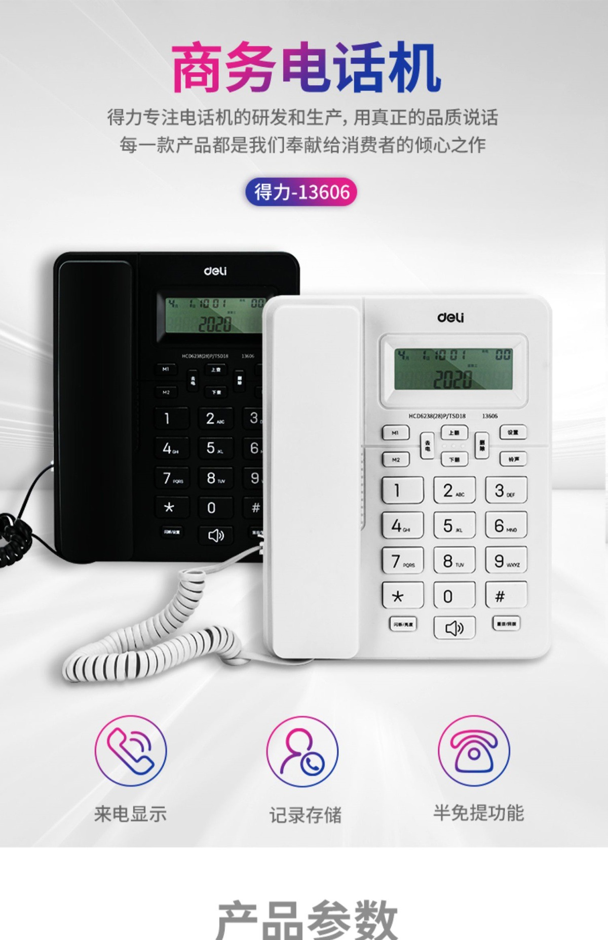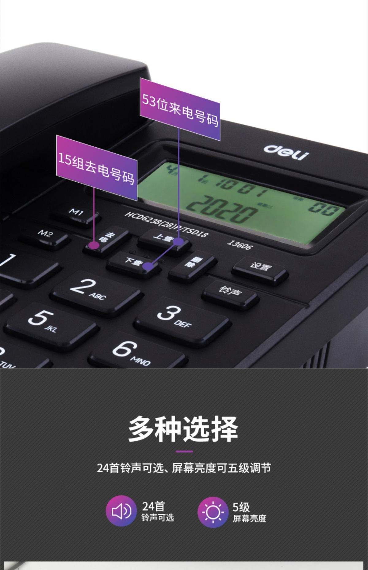Deli 13606 проводной настольный фиксированный телефон стационарный домашний офис автономный идентификация абонента телефон для ресепшн