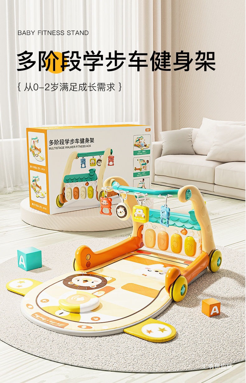 Многофункциональная трехв одном фитнес-рамка с пианино для новорожденных, многоуровневая активная рамка для детей, детский коврик
