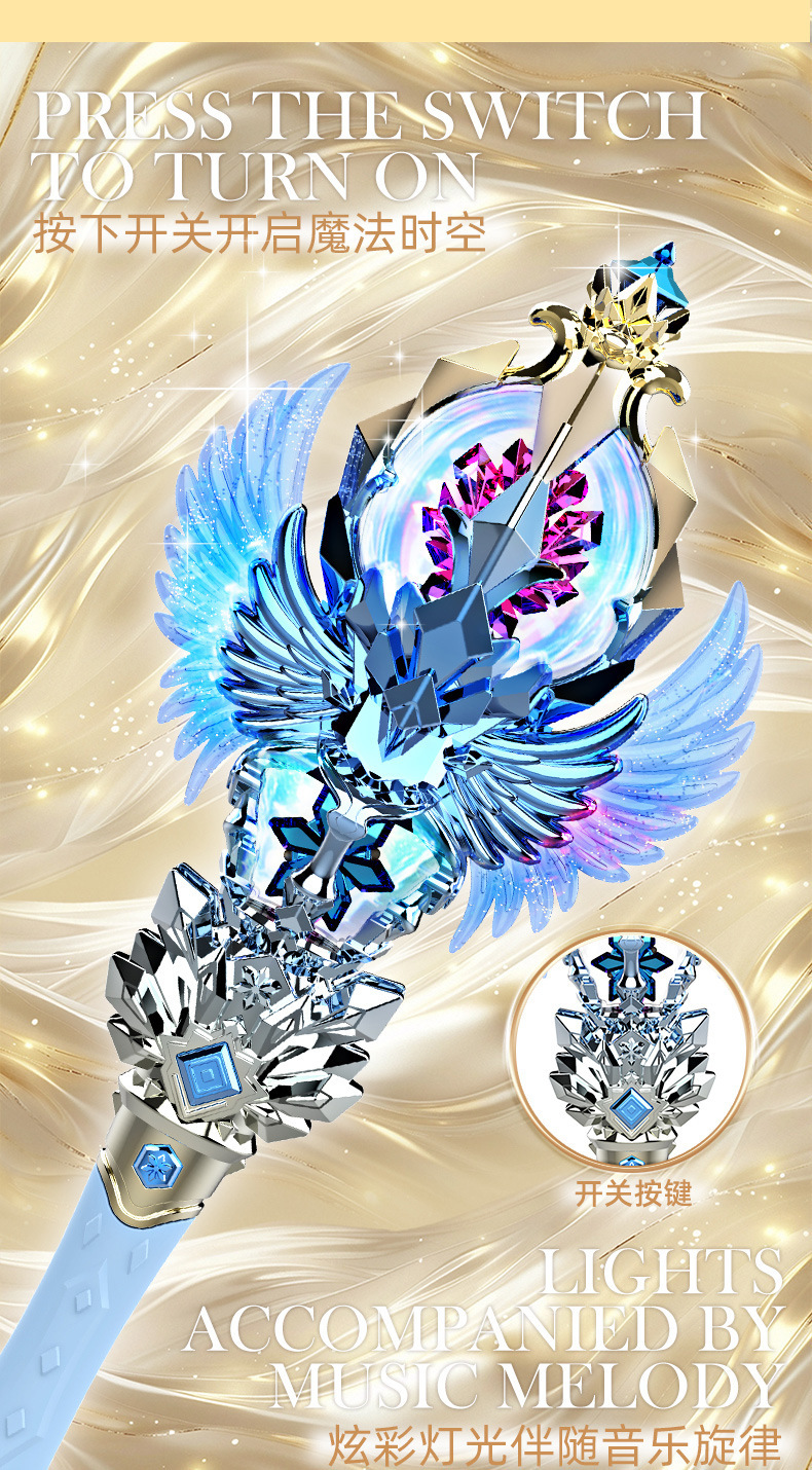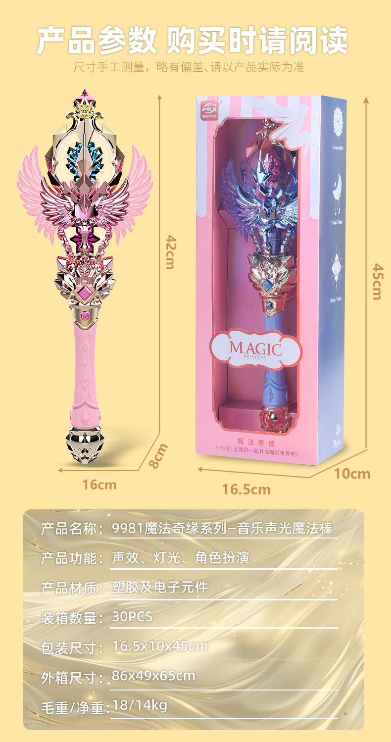 Волшебная палочка для девочек с музыкой и светом, вращающаяся электрическая палочка, игрушка для принцесс
