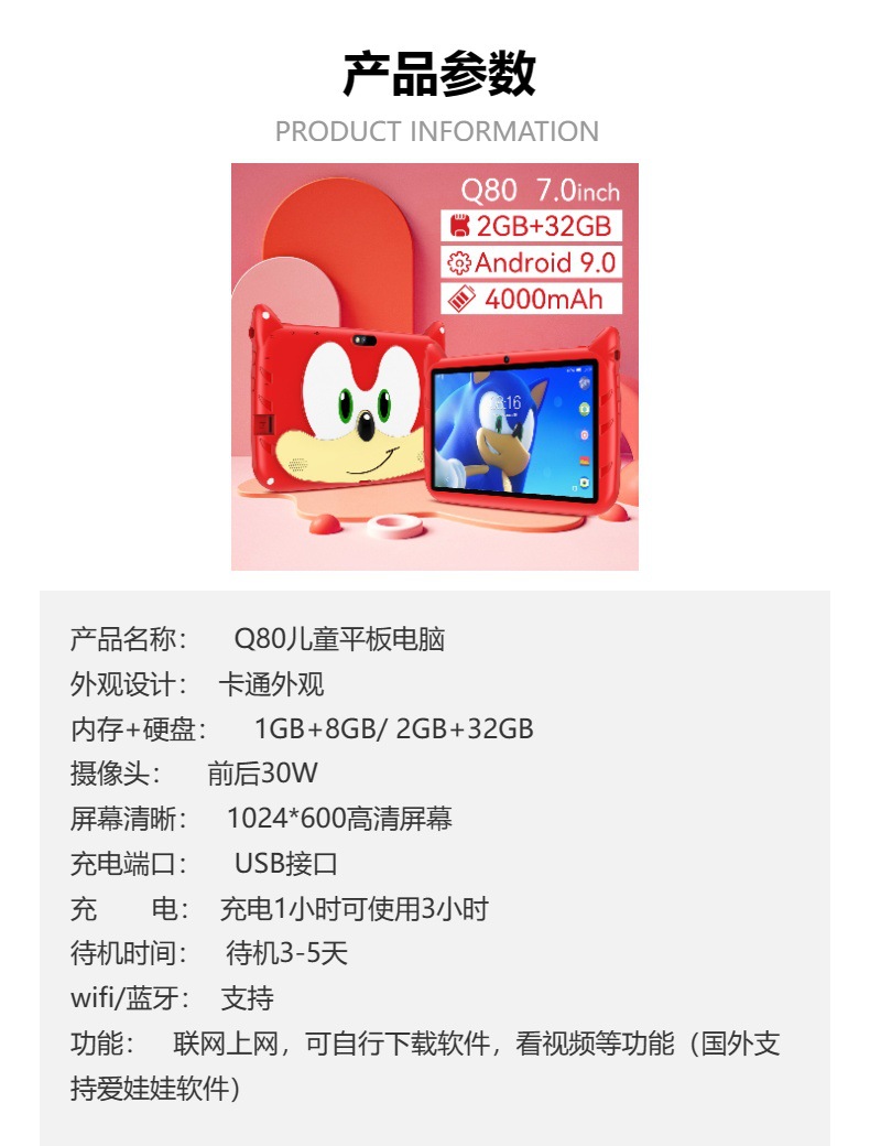 Оптовая продажа нового 7-дюймового детского обучающего планшета, WiFi, Bluetooth, кросс-бордерная электронная коммерция