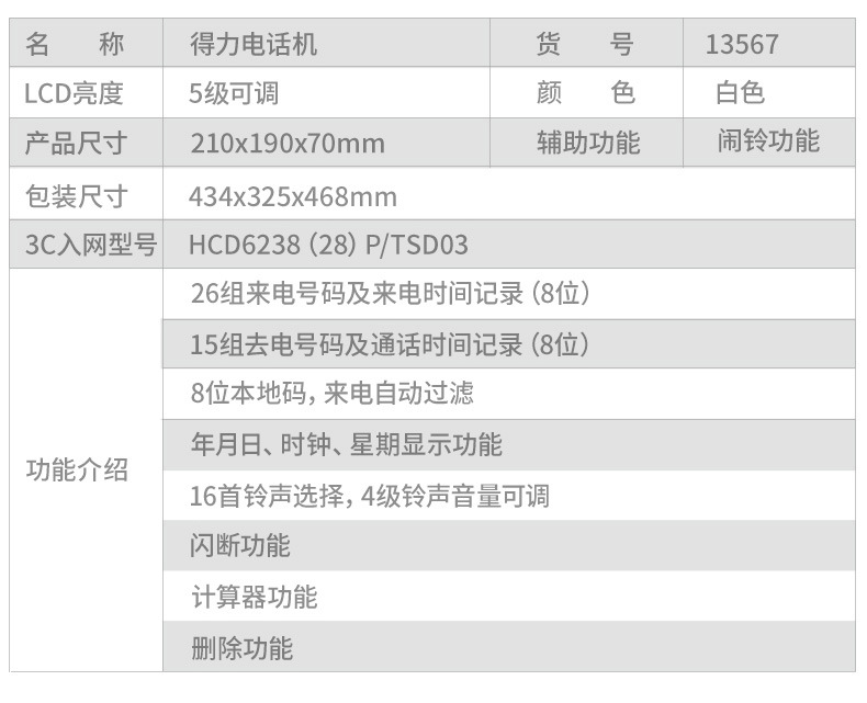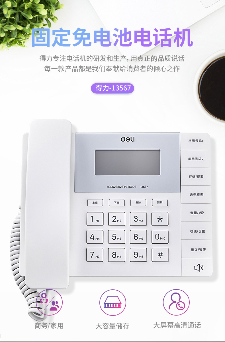 Deli телефон проводной настольный домашний офис автономный бизнес гостиница фиксированный идентификация абонента стационарный телефон