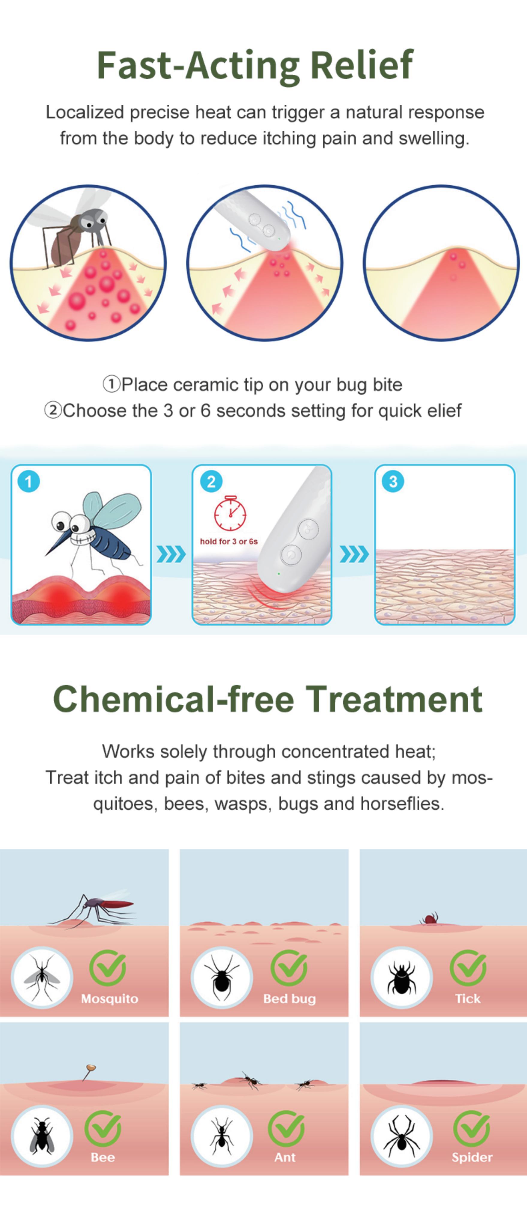 Популярное устройство для лечения укусов насекомых, переносное устройство для снятия зуда от укусов комаров