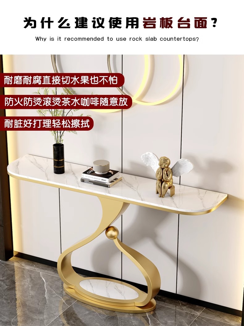 意式轻奢长方形岩板玄关桌入户简约艺术走廊靠墙置物架端景台玄关