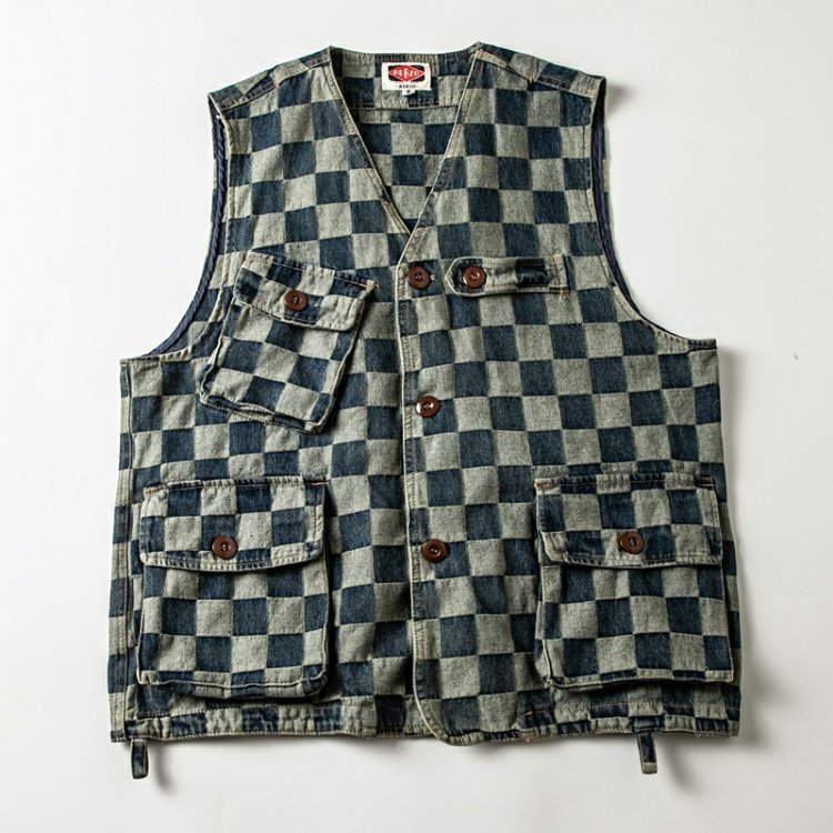 Мужской винтажный джинсовый жилет с множеством карманов в японском стиле, потертый джинсовый жилет свободного кроя