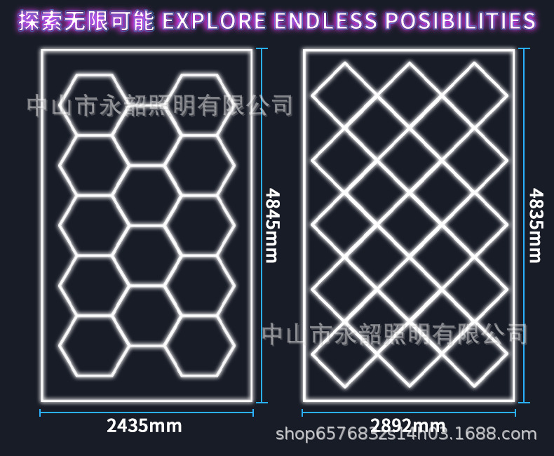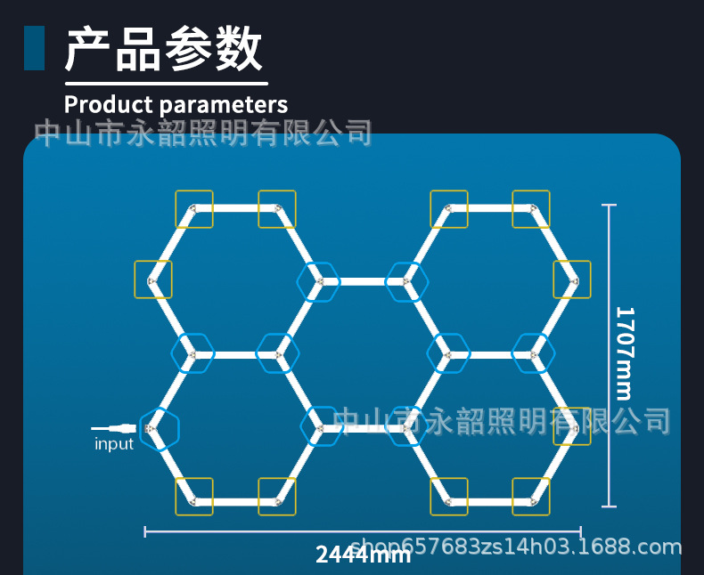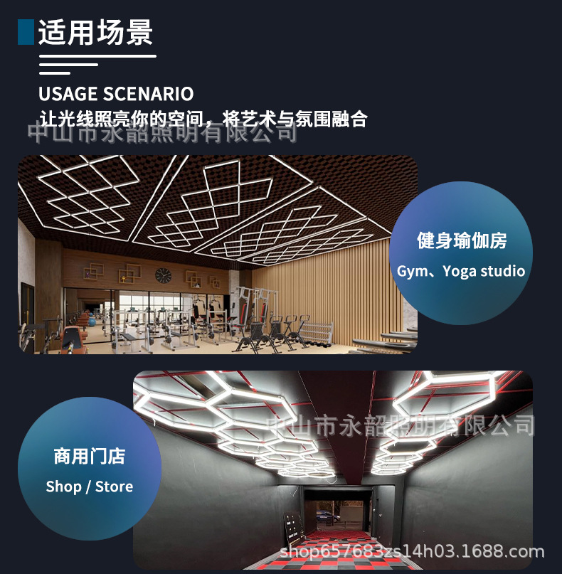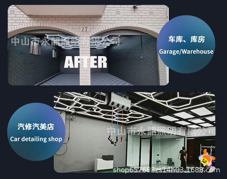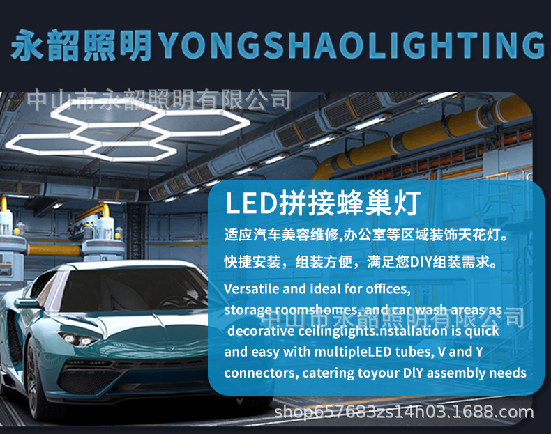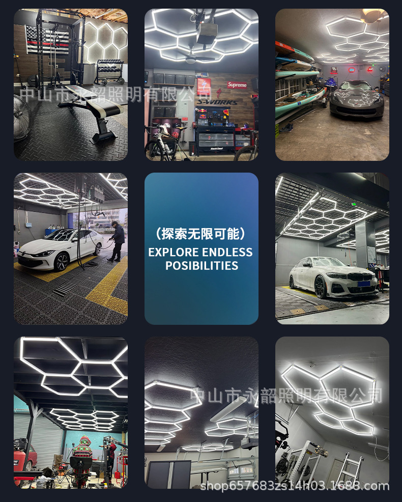 Кросс-бодерная светодиодная лампа в виде сот, шестигранная, для мойки автомобилей, автосервиса, фитнеса