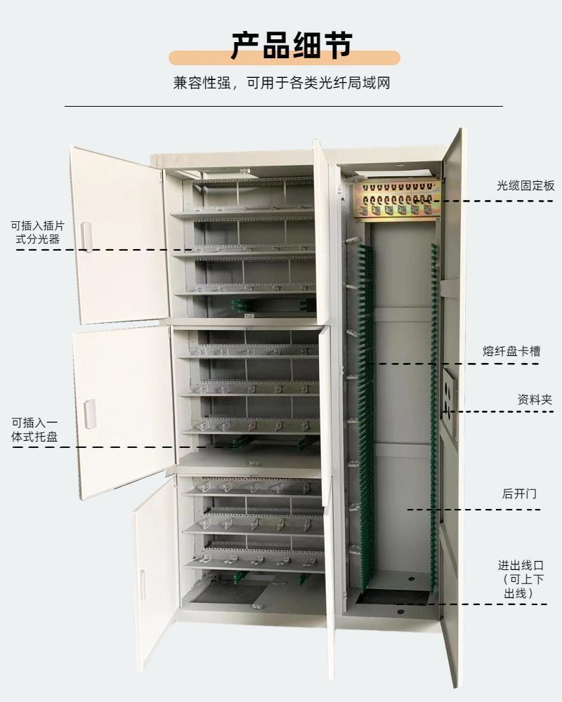 720-волоконный распределительный шкаф ODF напольный для внутреннего дата-центра, специализированный для трехсетевой и четырехсетевой 1440-волоконной распределительной системы