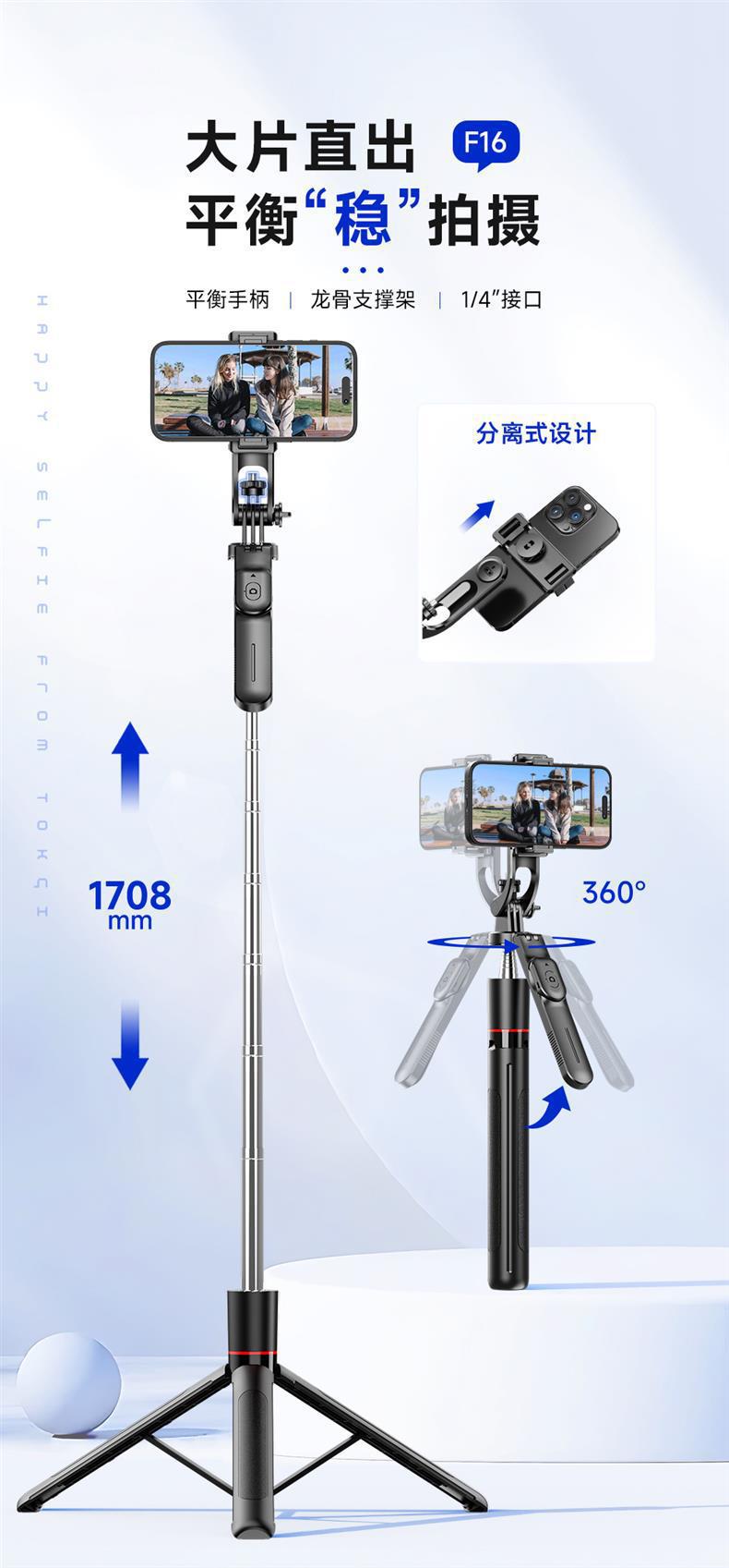 Селфи-палка для мобильного телефона F16, сбалансированная и стабильная, все в одном, штатив для живой съемки, Bluetooth, антидребезг