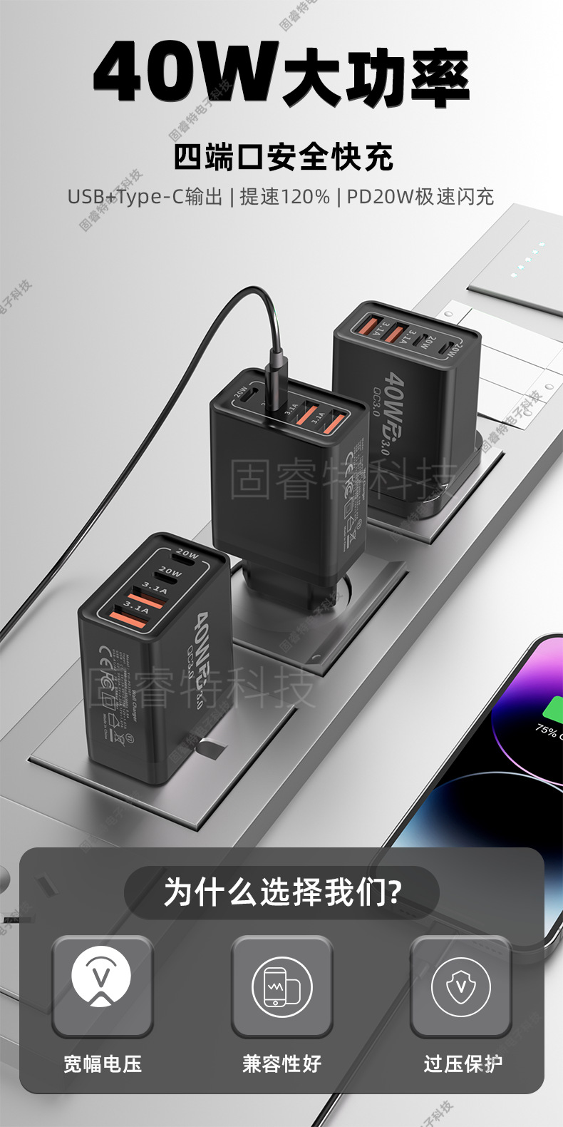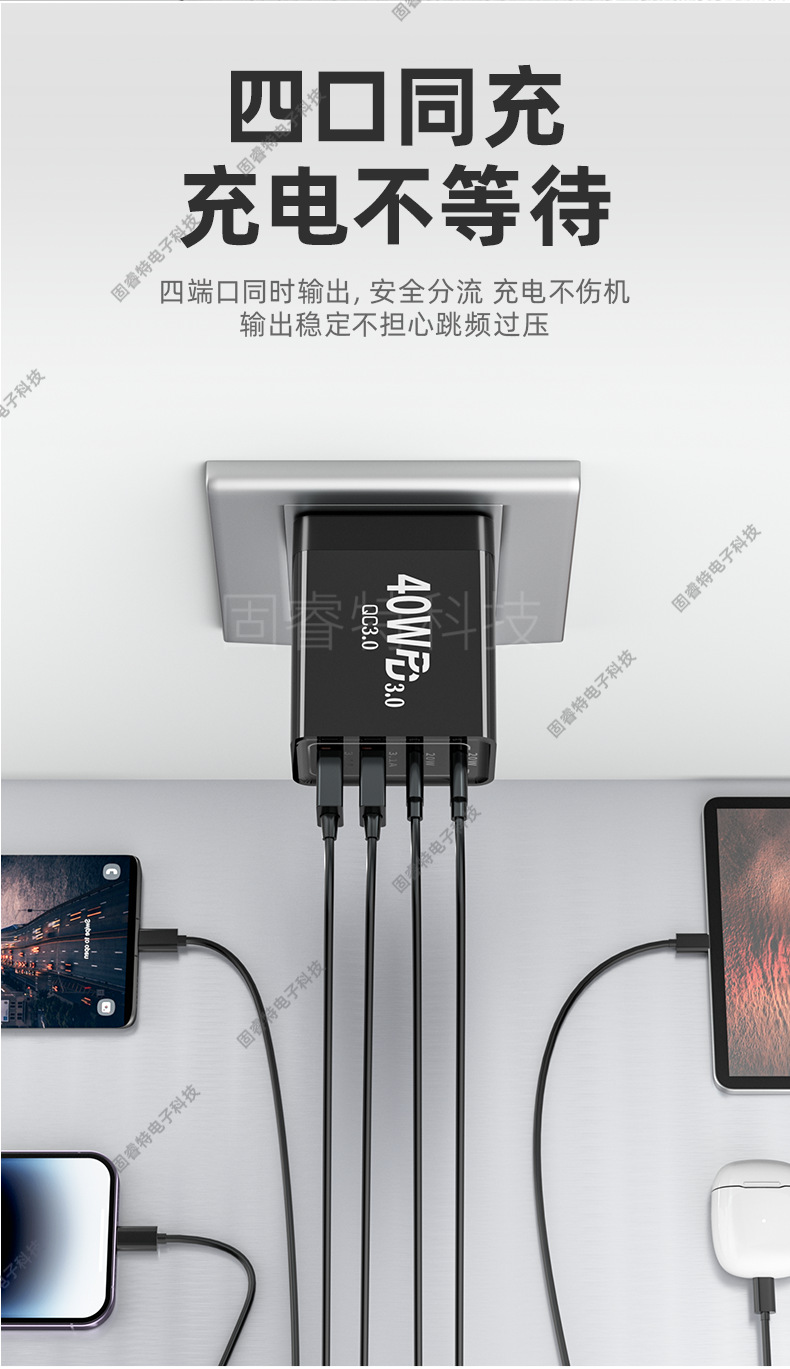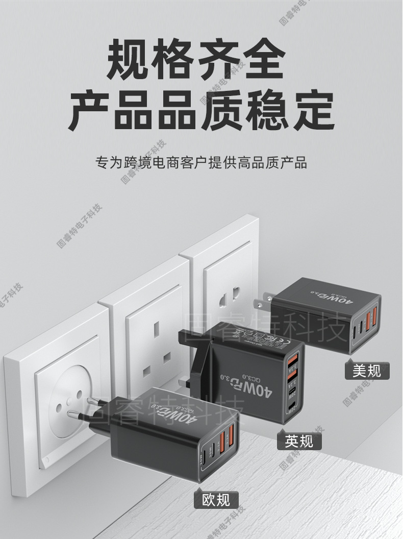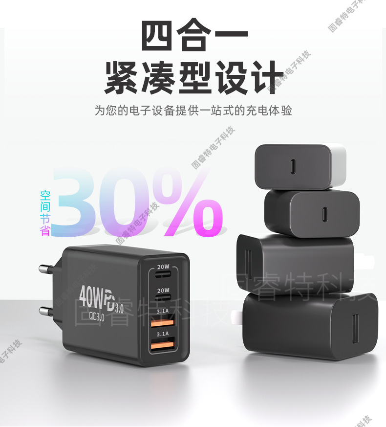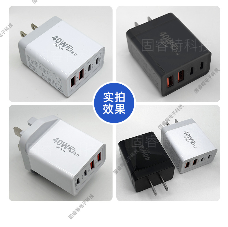Зарядное устройство 40W, многопортовое, подходит для Apple 16 и Android, быстрое зарядное устройство, двойной C, европейский, американский и британский стандарты