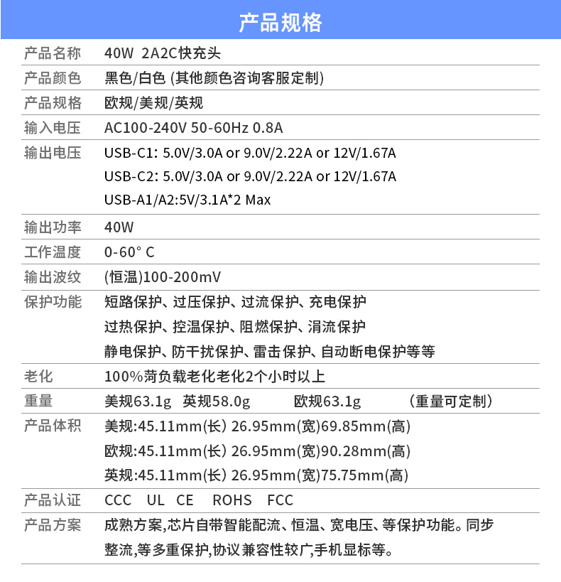 ![]() | Black | 40w fast charging head 2c2a european standard [ce certified model] | ¥20.0 / ≈ 242 ₽ | 74671 | 5910415448747 | |