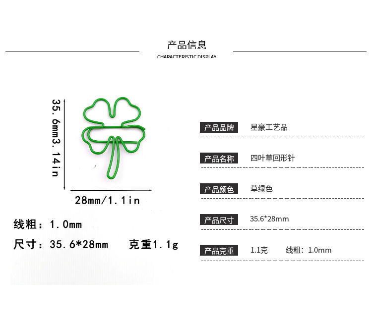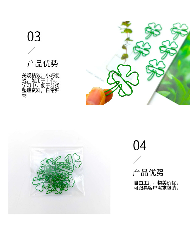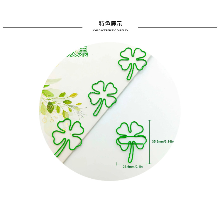 Скрепка в форме четырехлистного клевера, зеленая, для украшения