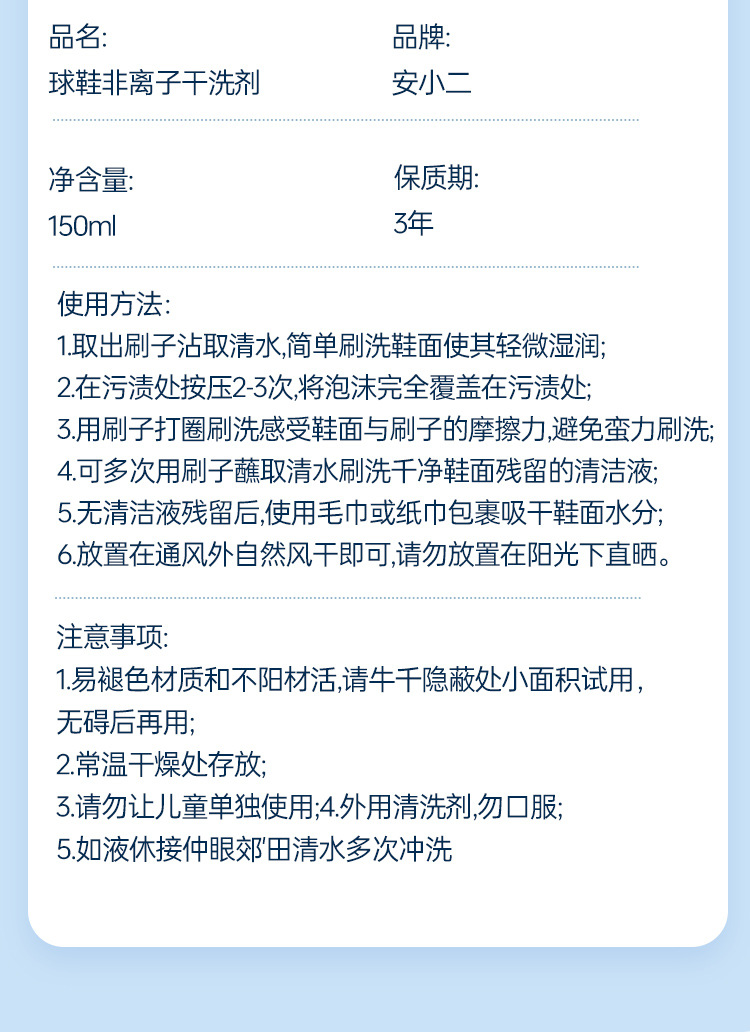 ![]() | Sneaker dry cleaning agent 150ml | ¥1.4 / ≈ 17 ₽ | 9994740 | 5924804463980 | |