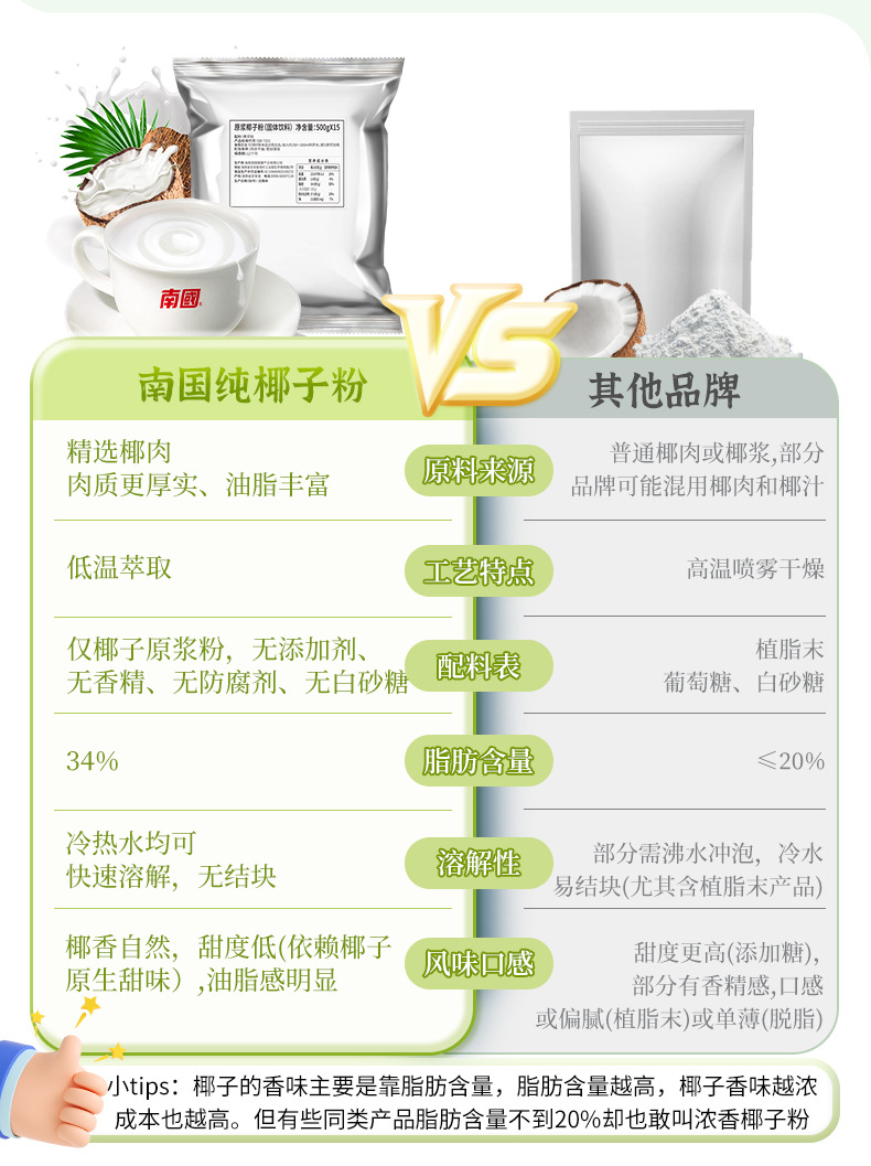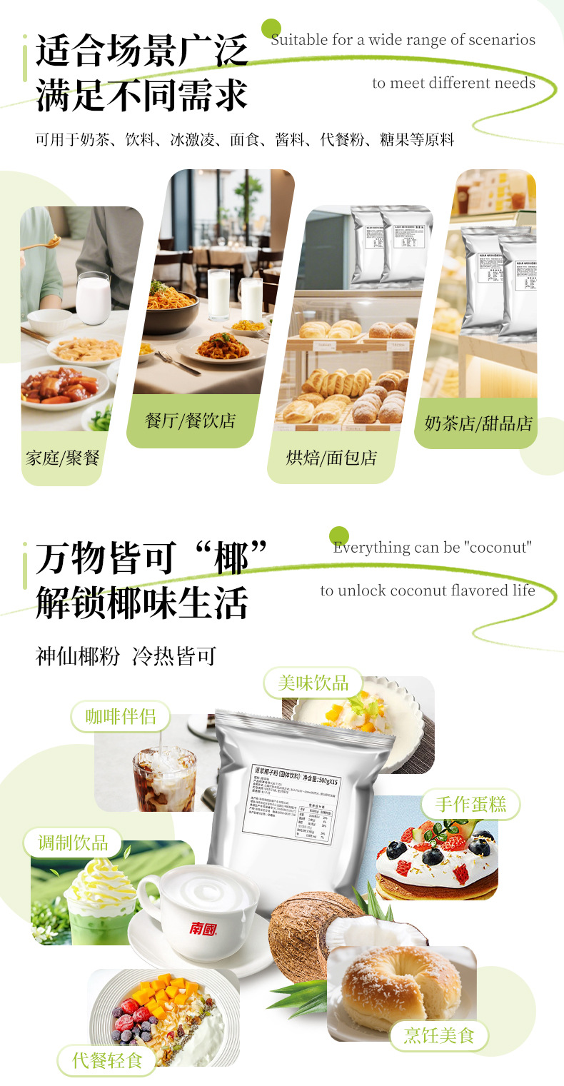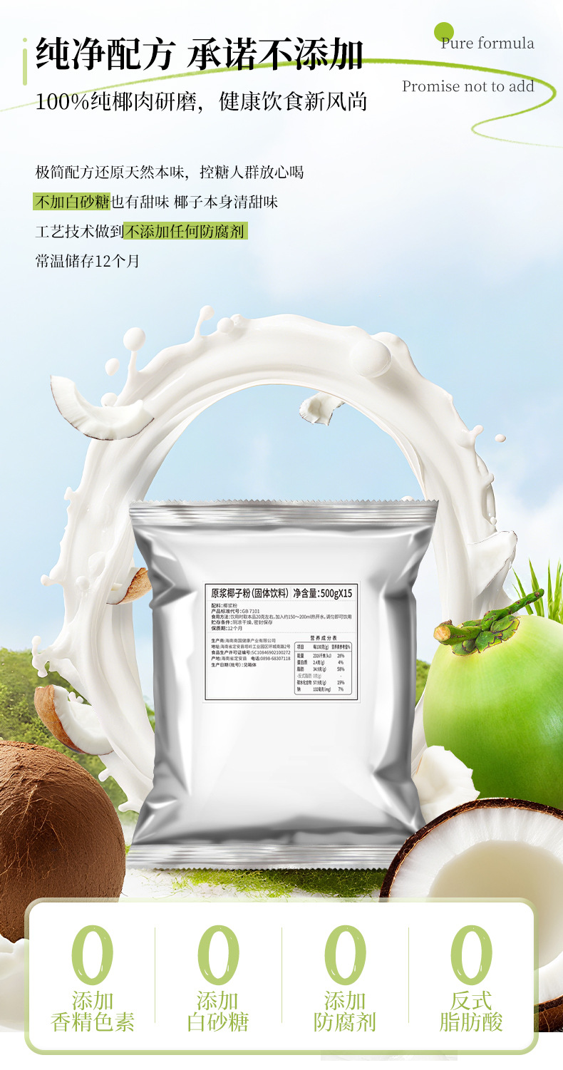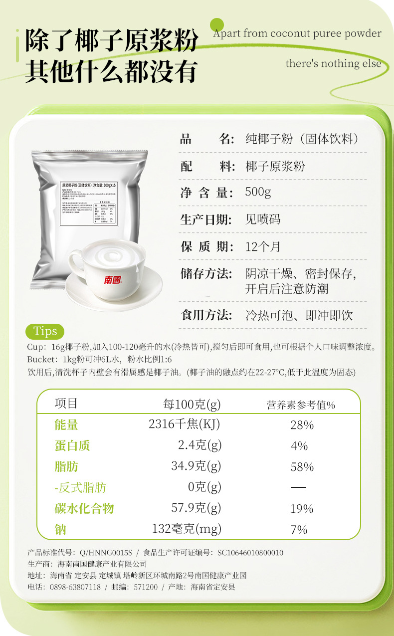 Пюре кокосового порошка Nanguo 500г Кулинарные ингредиенты Коммерческая упаковка Кокосовое молоко Порошок кокоса