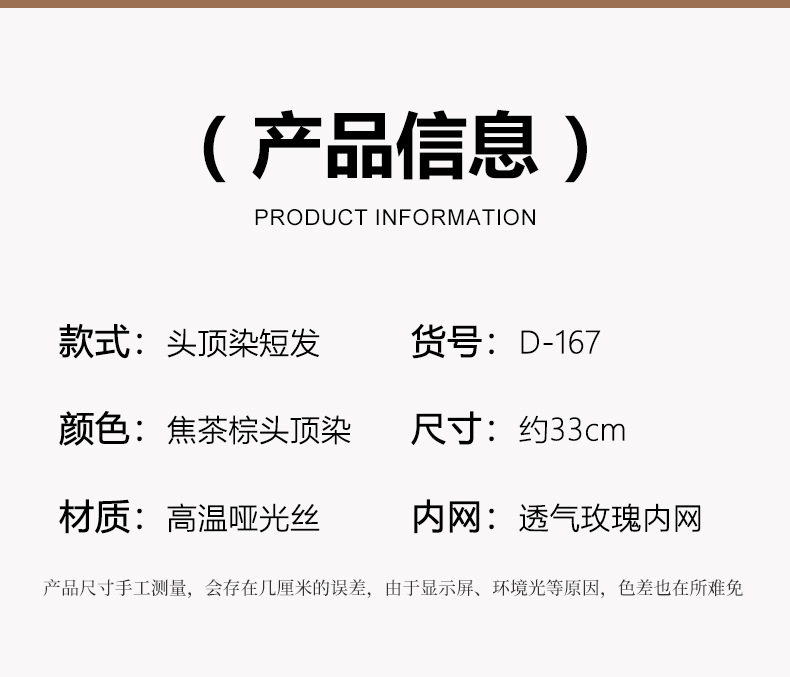 4。假发因批次生产的关西,每批染色难免有些微误差,并会依每顶发型的不同而做些微的调色, 无法接受请勿下单!