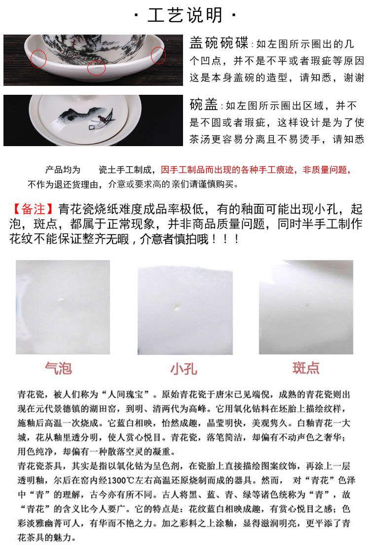 Прямой заводской набор кунг-фу чая, керамические чашки, белый фарфоровый набор с синими и белыми чашками, крышка, чайный набор с возможностью печати логотипа
