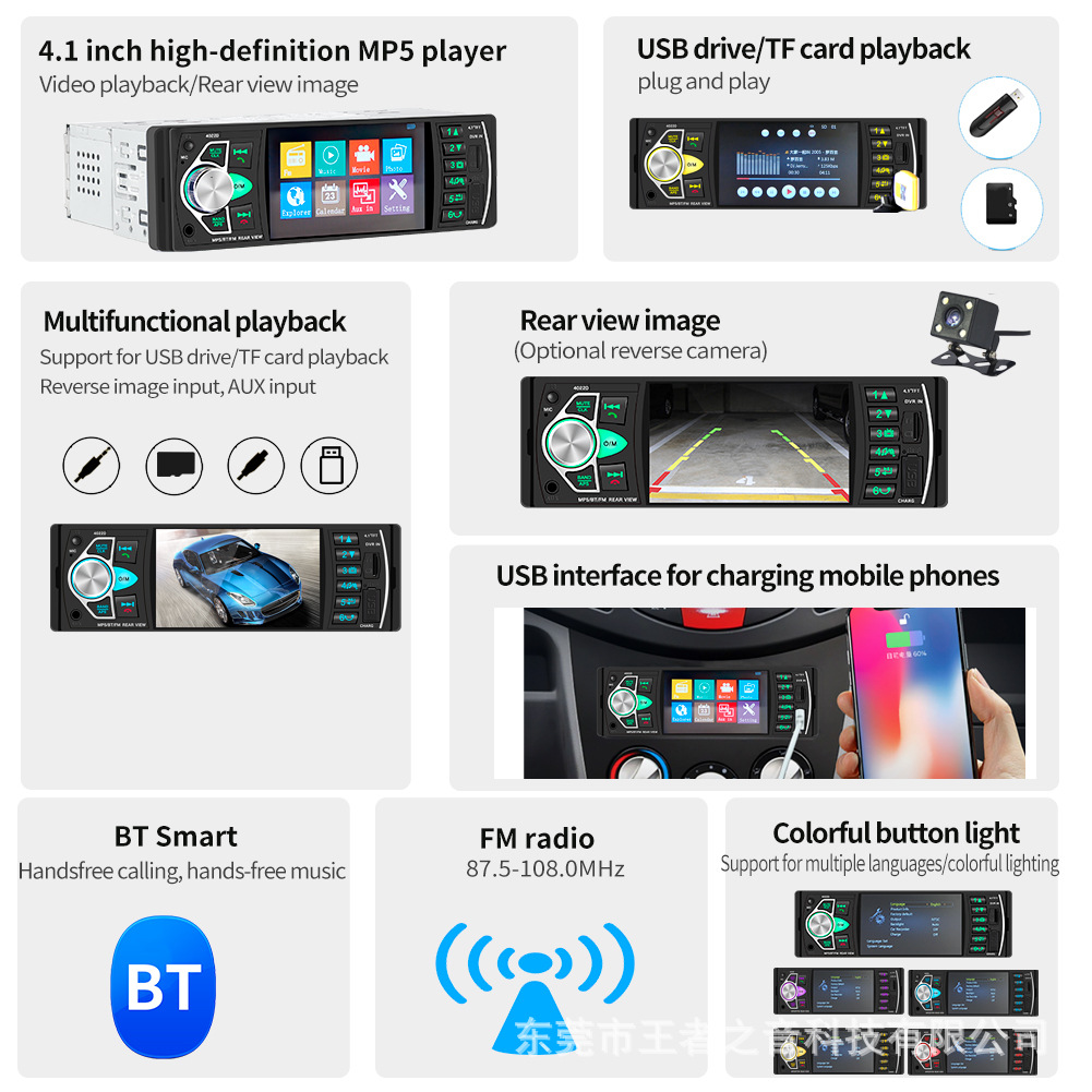4 дюйма MP5 плеер поддержка обратного изображения Bluetooth