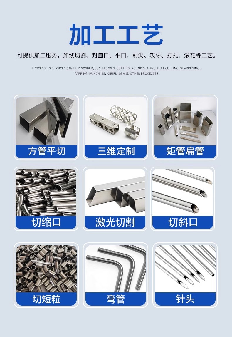 Труба из нержавеющей стали 304, тонкостенная круглая труба, бесшовная капиллярная стальная труба, квадратная труба, лазерная резка