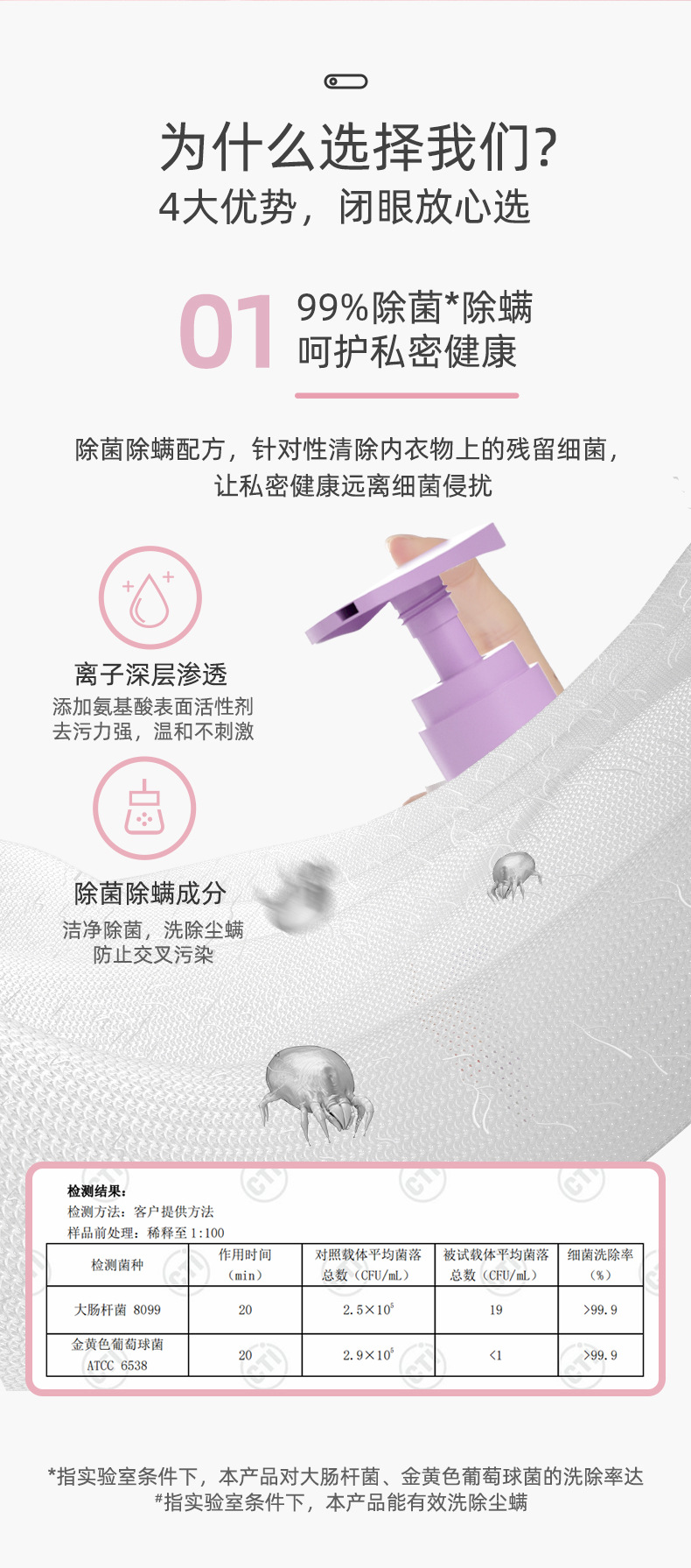 Жидкость для стирки нижнего белья с аминокислотами, антибактериальная, для удаления пятен крови и клещей