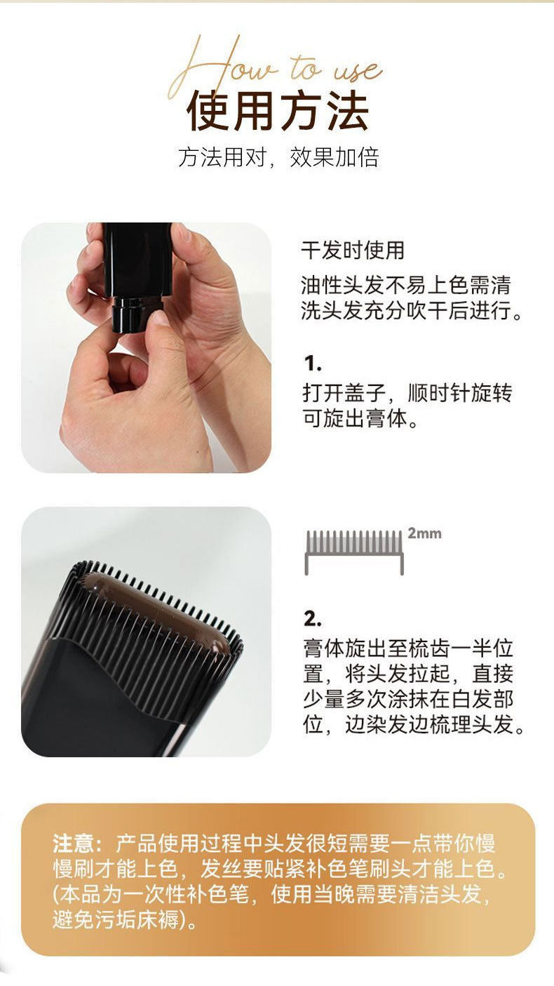 Карандаш для окрашивания волос Han Zini для черных волос, одноразовый, для покрытия седых волос