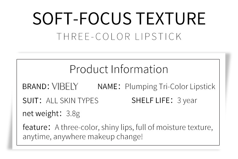 Цветной помада VIBELY, меняющая цвет, не оставляющая следов, трехцветная, водостойкая, длительное увлажнение, оптовая продажа