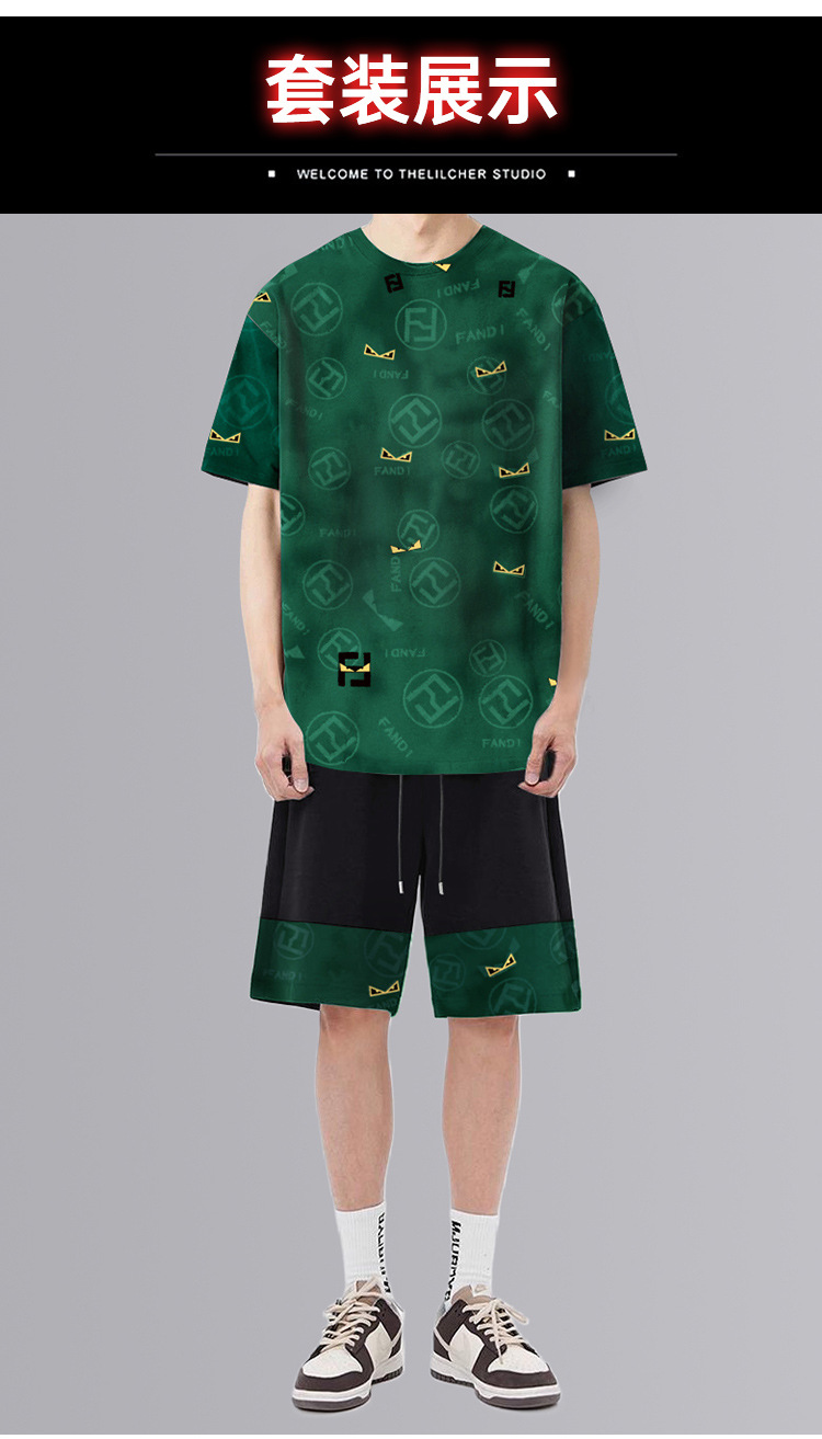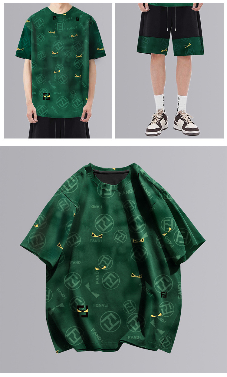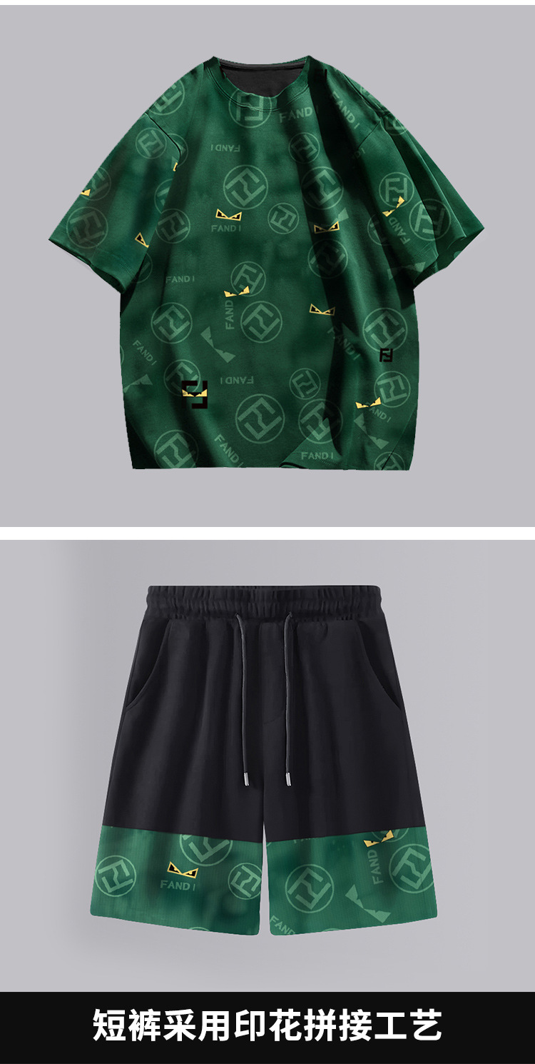 RT0515 короткий рукав-RDK0915 шорты зеленые, универсальный кэжуал костюм