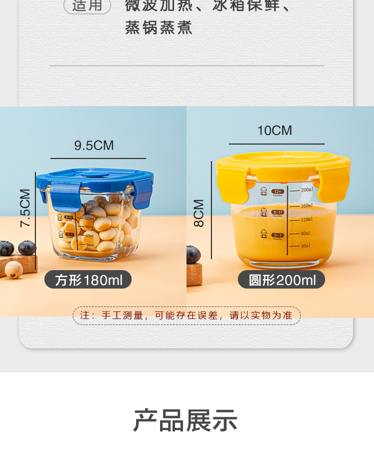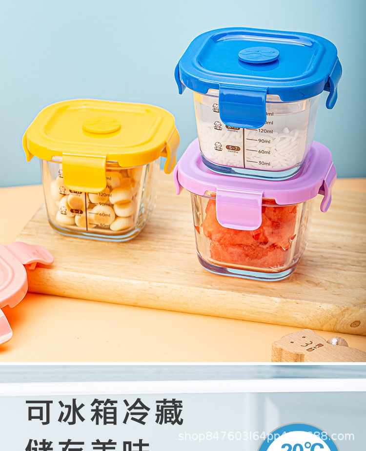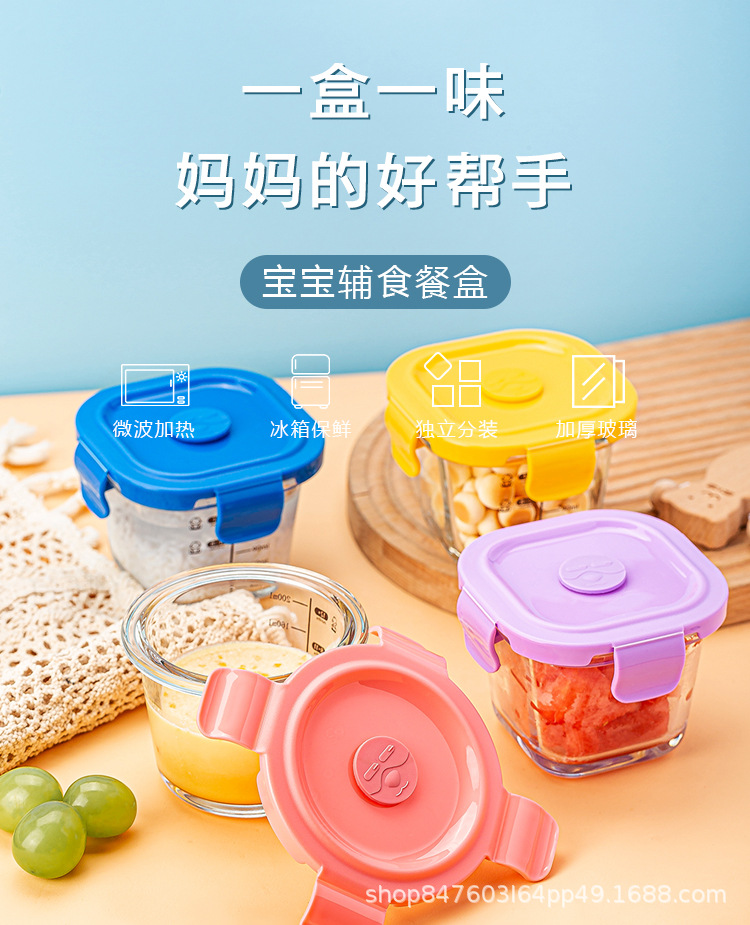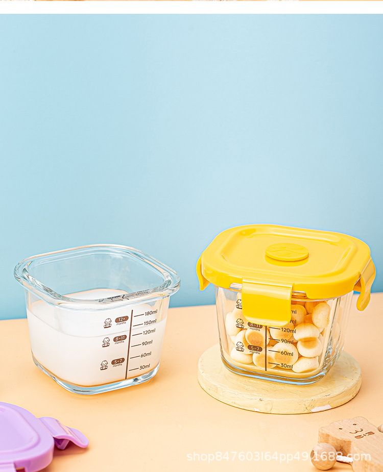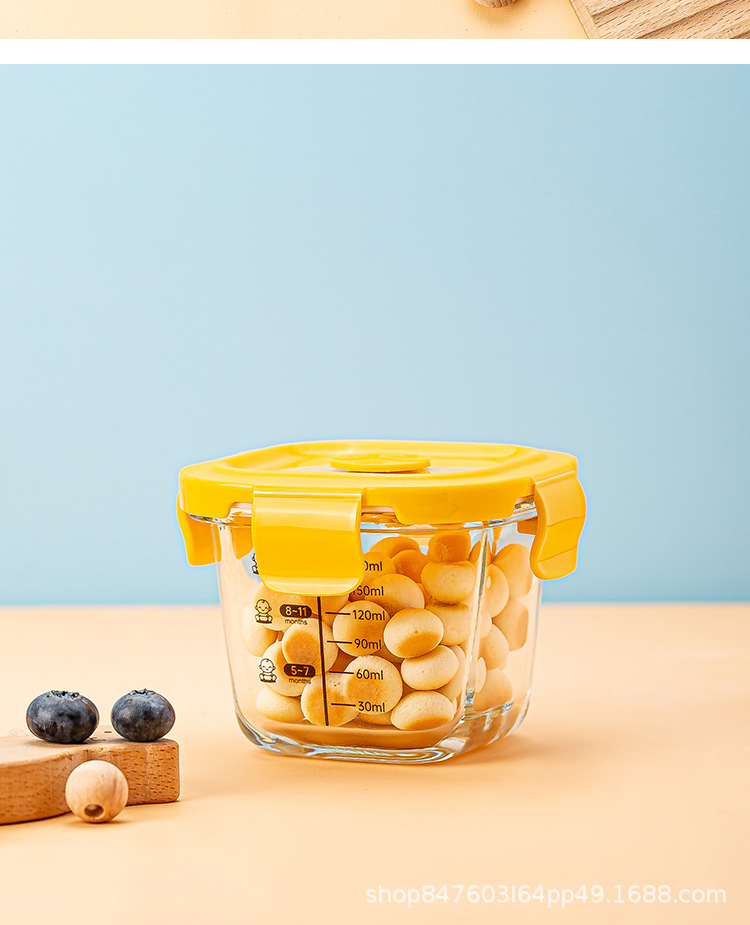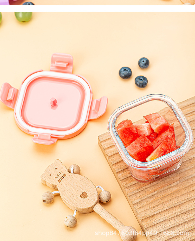 Квадратная круглая стеклянная коробка для продуктов, детская