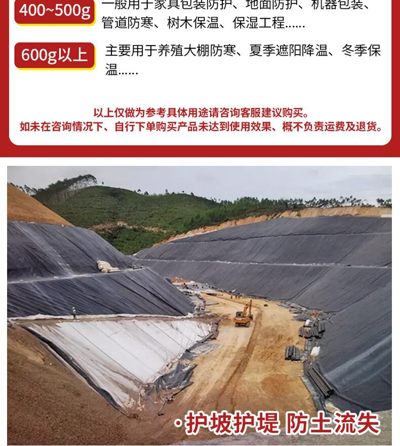 Геотекстиль Фетровая инженерная ткань Влагозащитная ткань Обслуживание дорог Теплица Холодная изоляция Черный хлопок Упаковка мебели Его М&