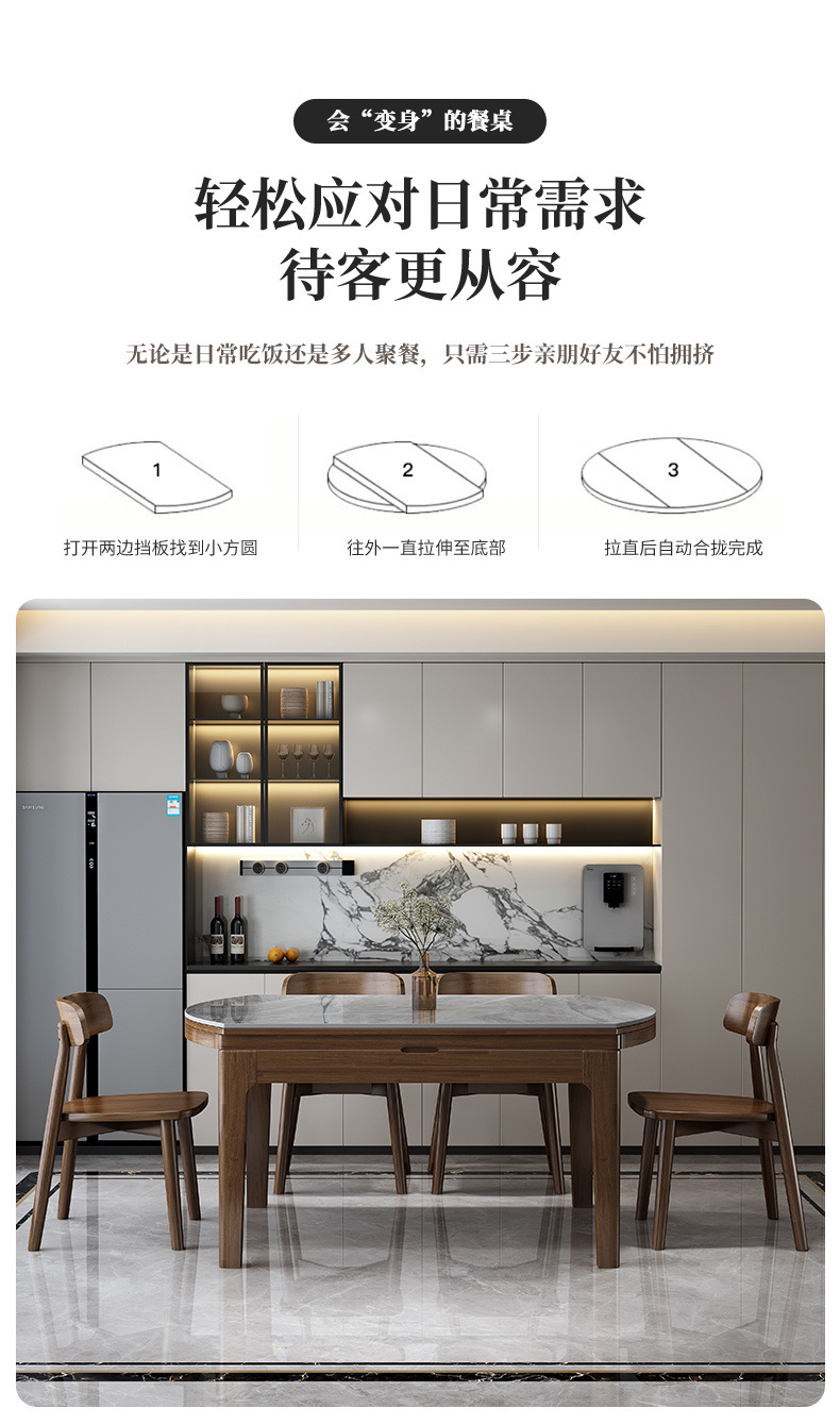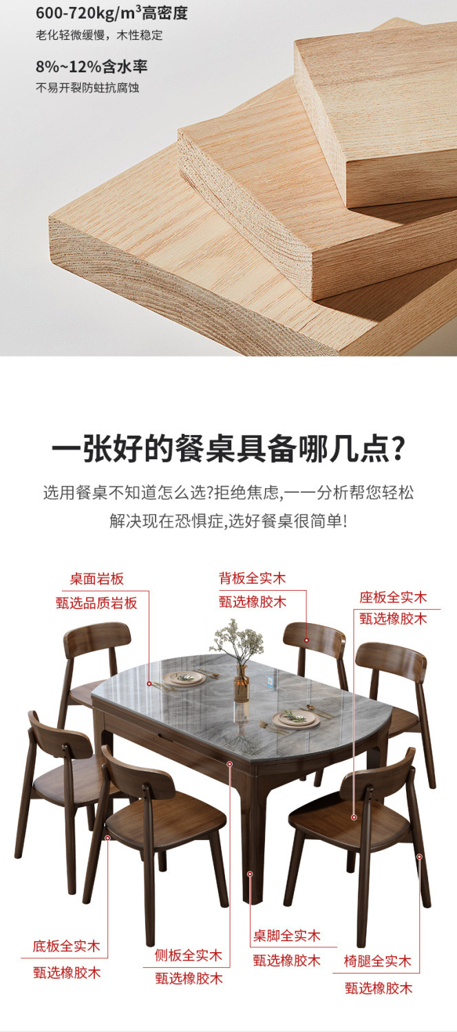 Обеденный стол из массива дерева для небольших квартир, раскладной, современный, с индукционной плитой
