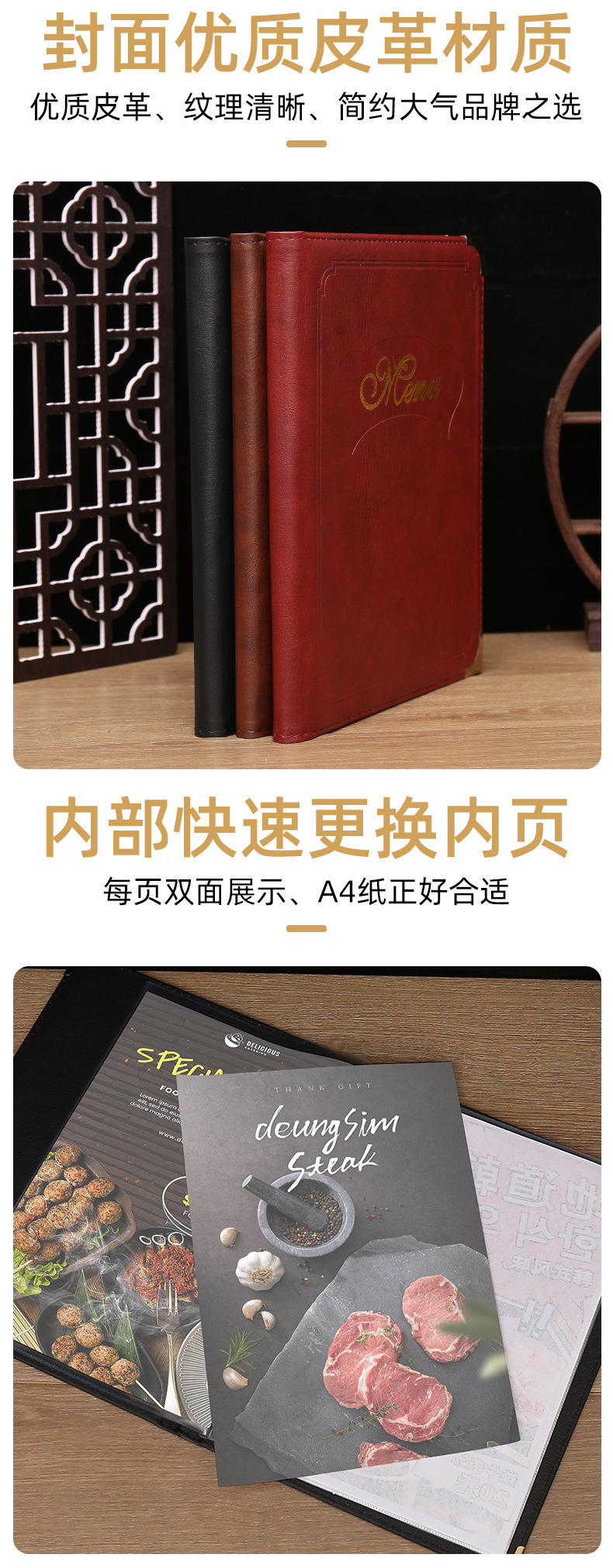 Папка для меню высокого класса, вставка для меню напитков, индивидуальная книга меню из PU кожи для банкетов