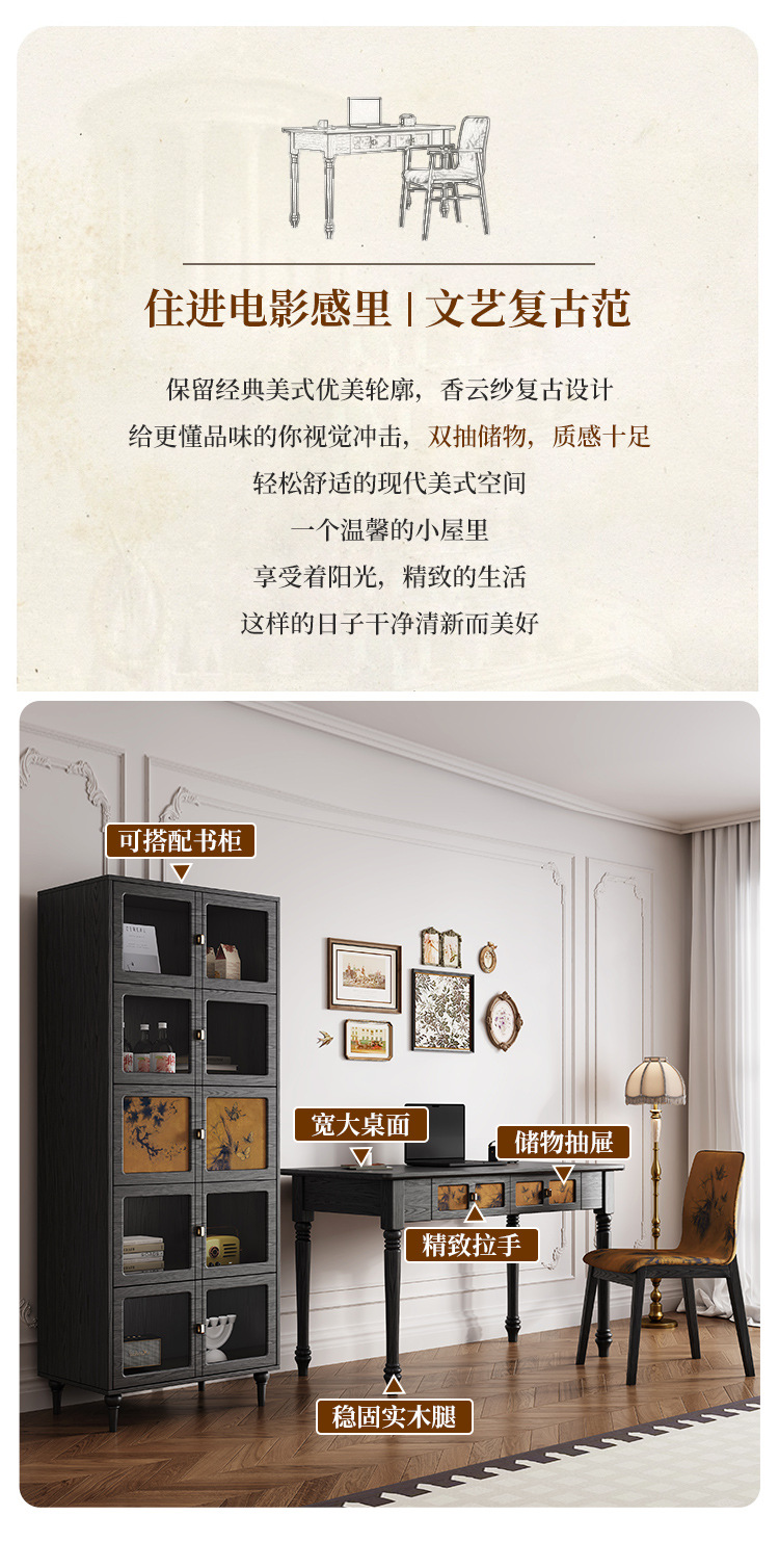 Французский стиль, винтажный стол, черный туалетный столик, письменный стол, интегрированные ножки из ясеня, компьютерный стол для дома