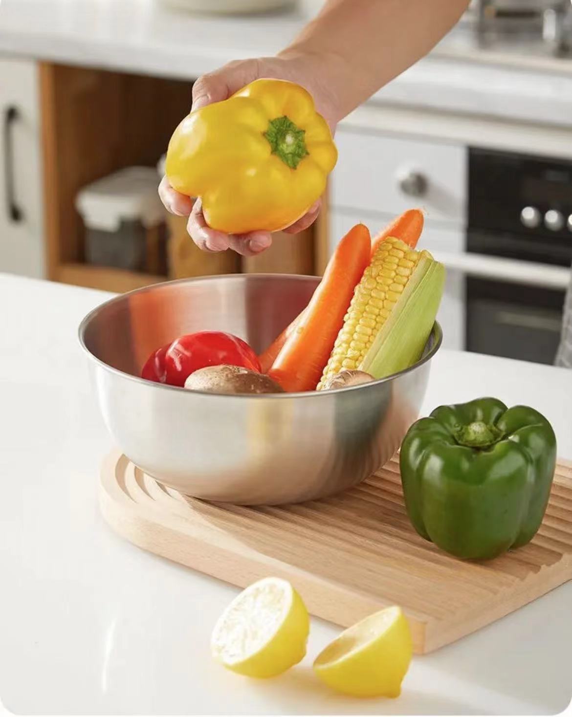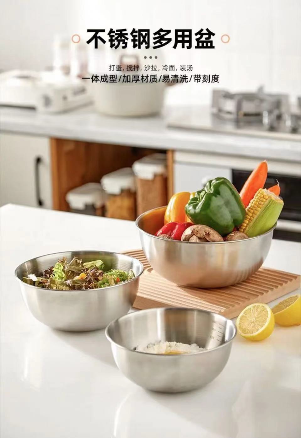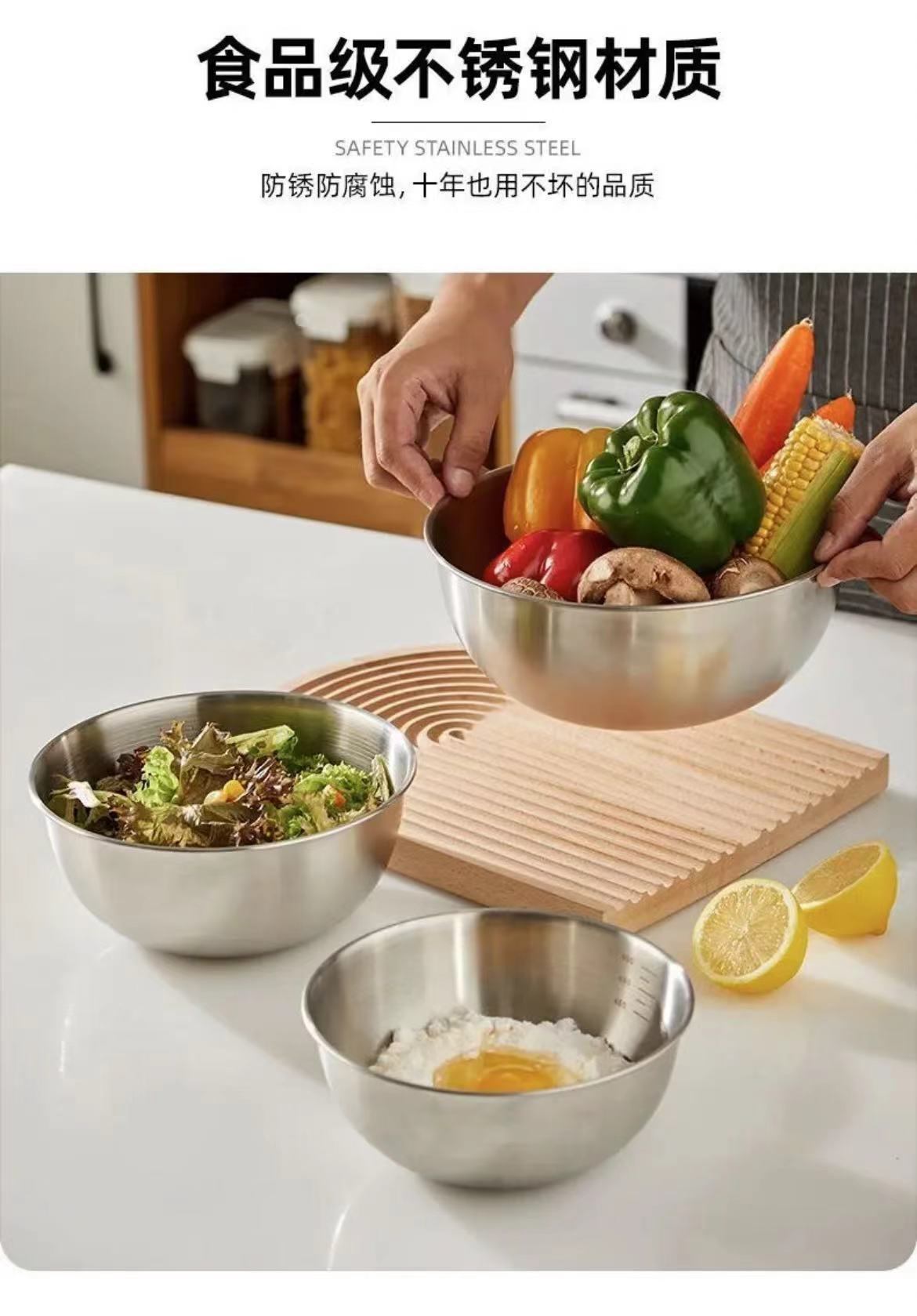 Чаша для салата из нержавеющей стали, чаша для яиц, корейская, для домашней выпечки и ухода за лицом, с весами, чаша для готовки, чаша для смешивания
