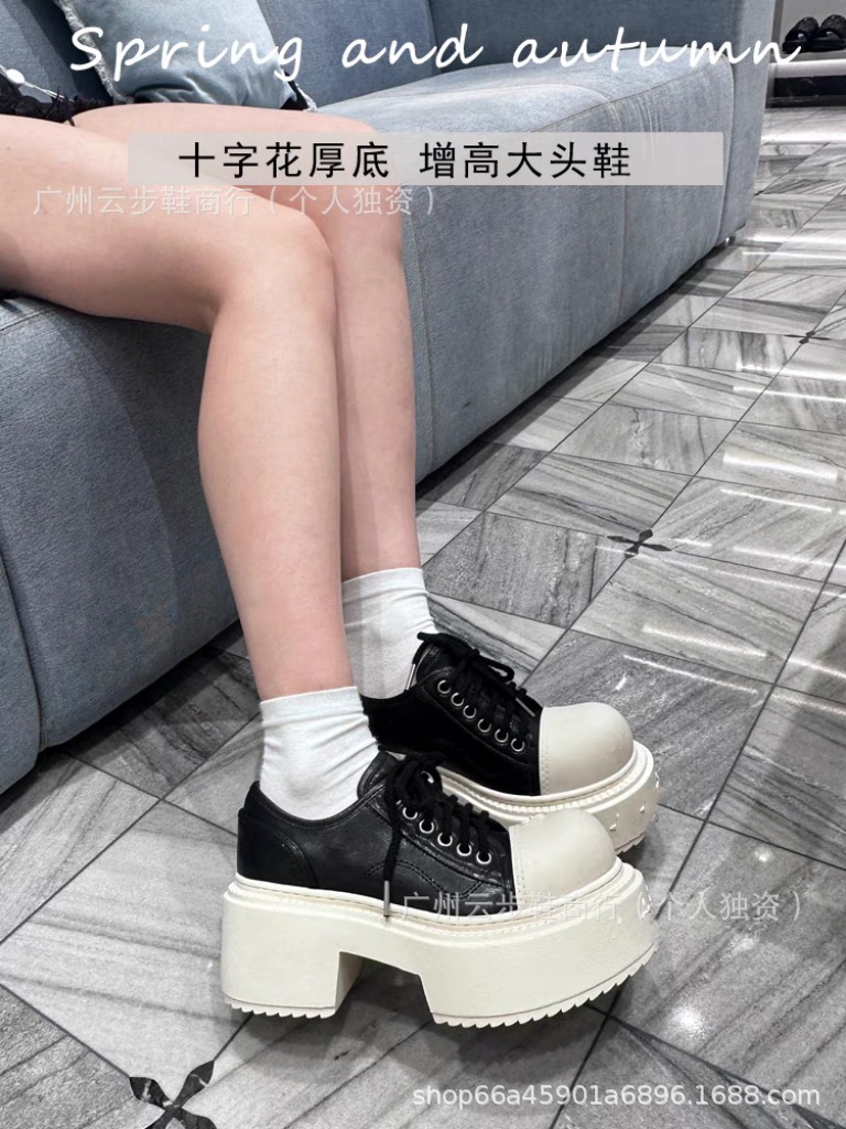 Торговая точка Xspot supply high version smfk thick-soled derby shoes for women 2025 spring and autumn new style platform cross flower british retro 7cm height increasing big toe shoes