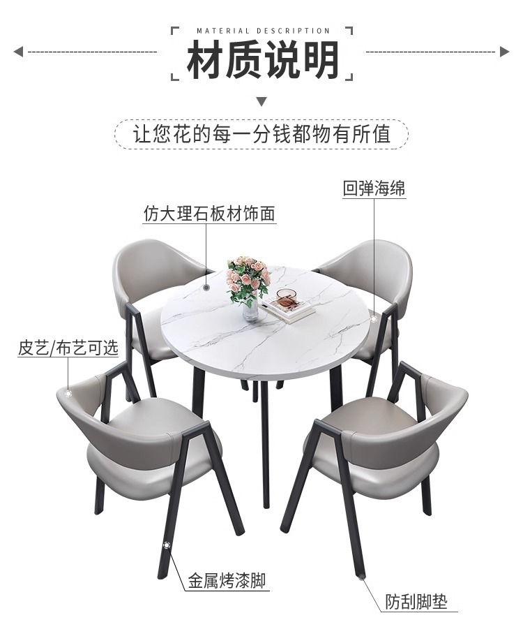 ![]() | 1 imitation stone table + light gray leather chair (black frame) | 80cm diameter table | ¥368.43 / ≈ 4 481 ₽ | 5800 | 5758721720205 | |