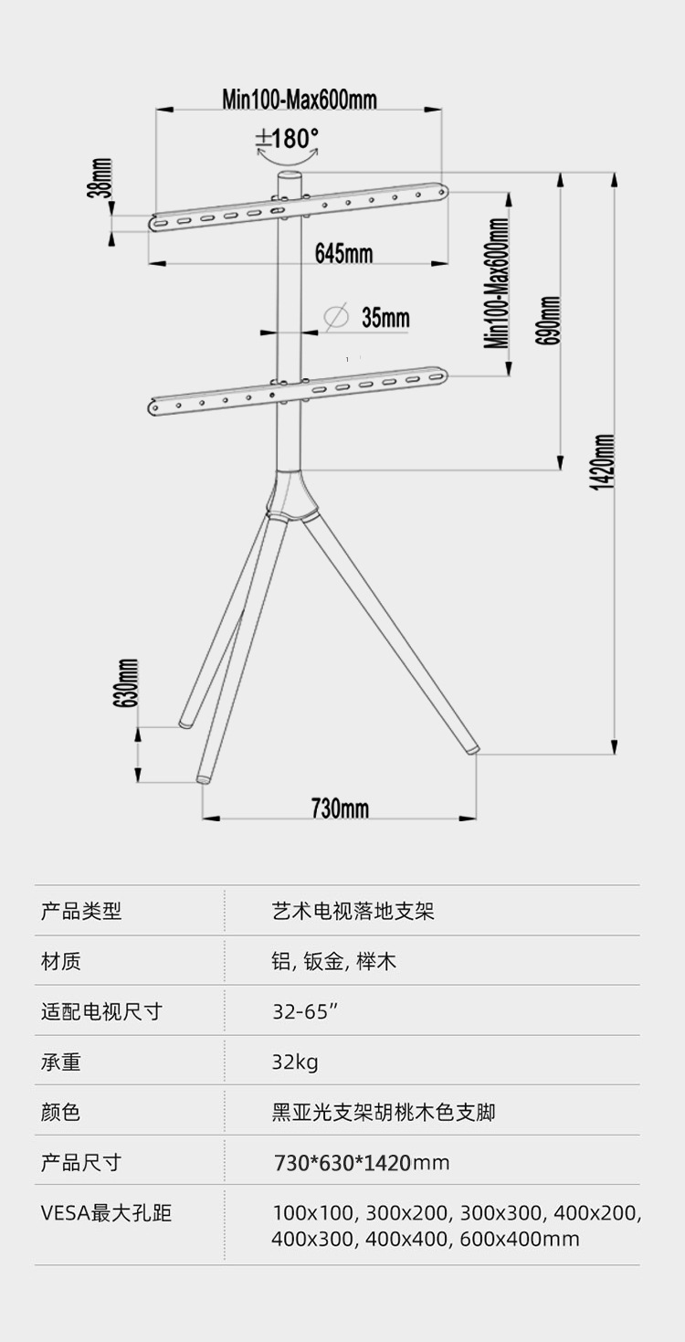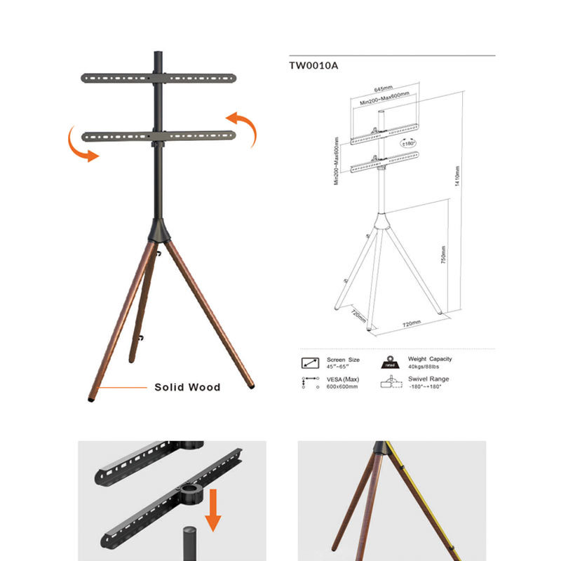 Подставка для телевизора из массива дерева, цвет темный орех, для 32, 50, 65, 75 дюймов
