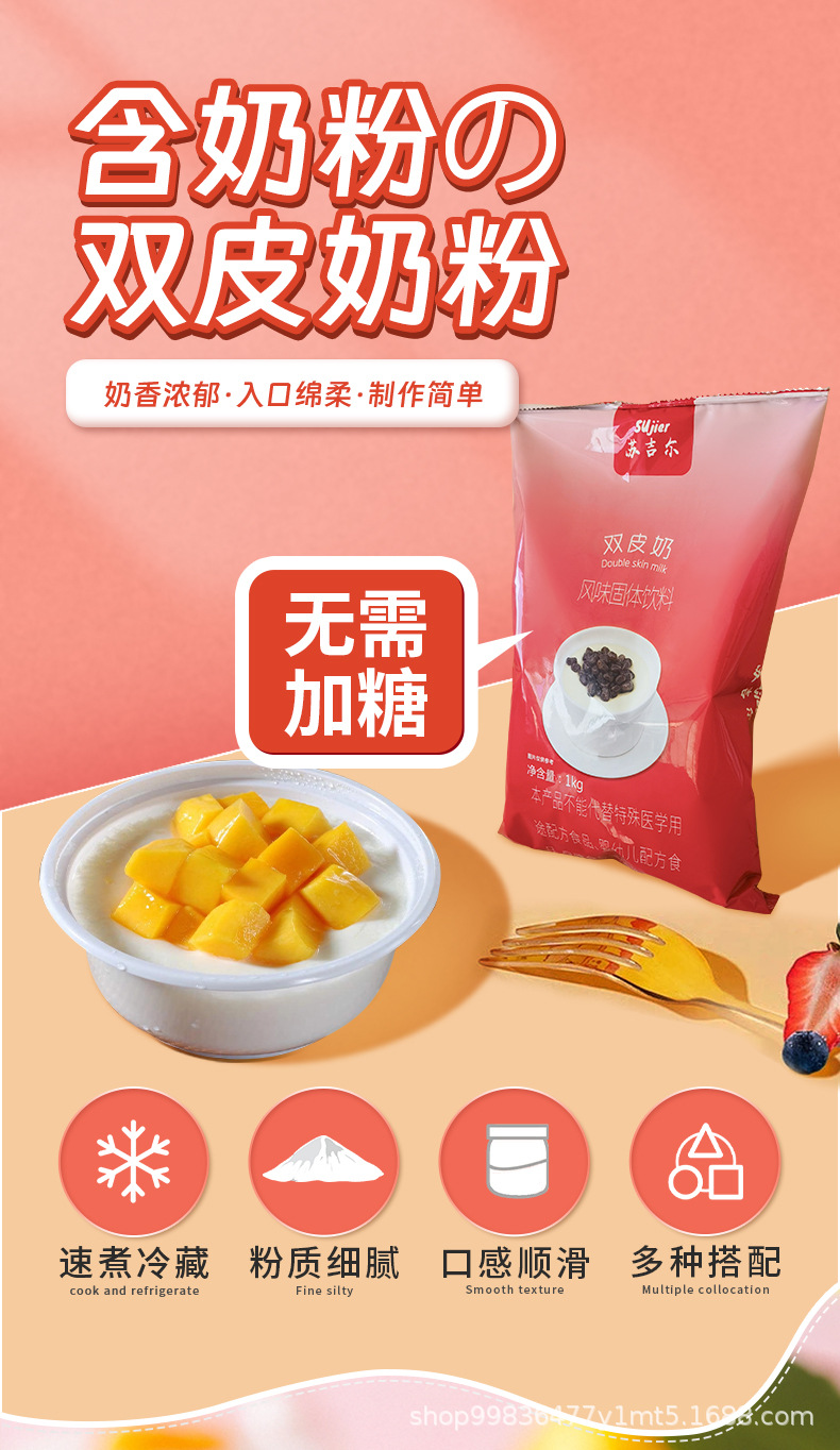 Sugil 1 кг двойной молочной пудры для десертов, оптовая продажа для магазинов молочного чая