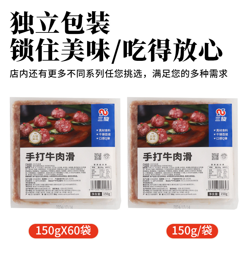 Трехвкусная говяжья паста 150г, упаковка, полуфабрикаты, говяжьи фрикадельки для приправы и маринования, шпажки, ингредиенты для хот-пота, оптовая продажа
