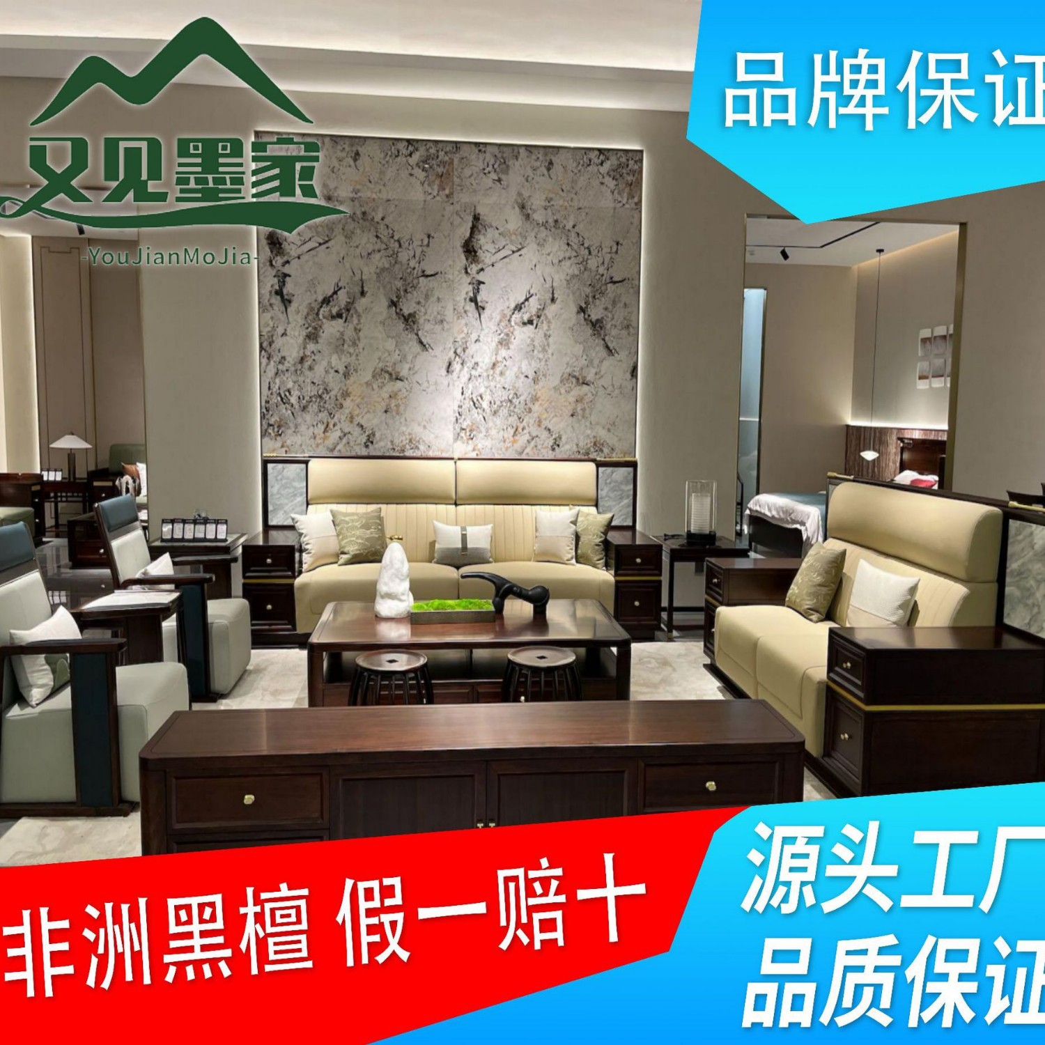 Новый китайский стиль, африканский эбеновый диван, легкая роскошь, диван для гостиной, кожаный диван, комбинация из массива дерева