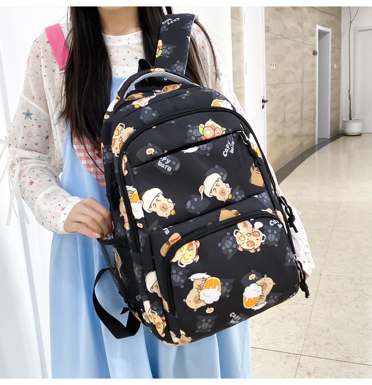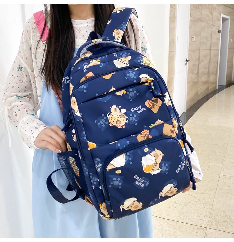 Новый нейлоновый рюкзак для учащихся начальной школы, милый рюкзак капибара, женский корейский повседневный легкий универсальный школьный рюкзак оптом