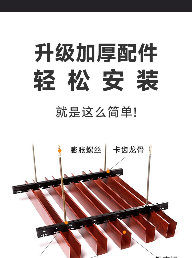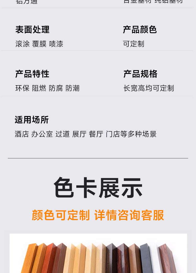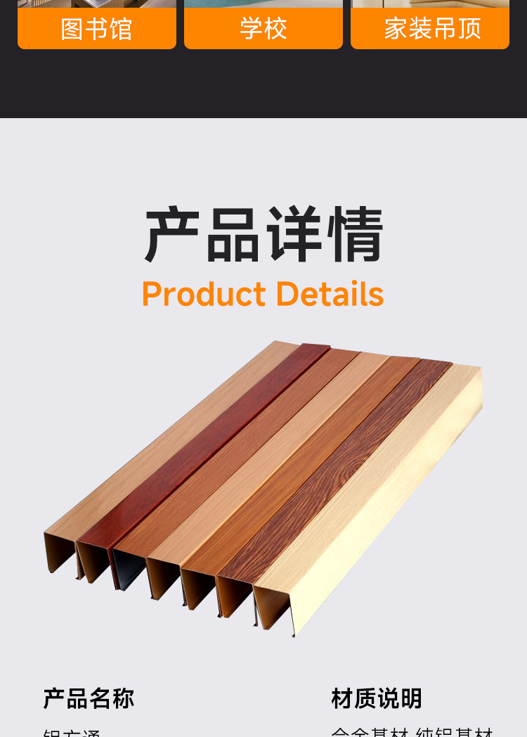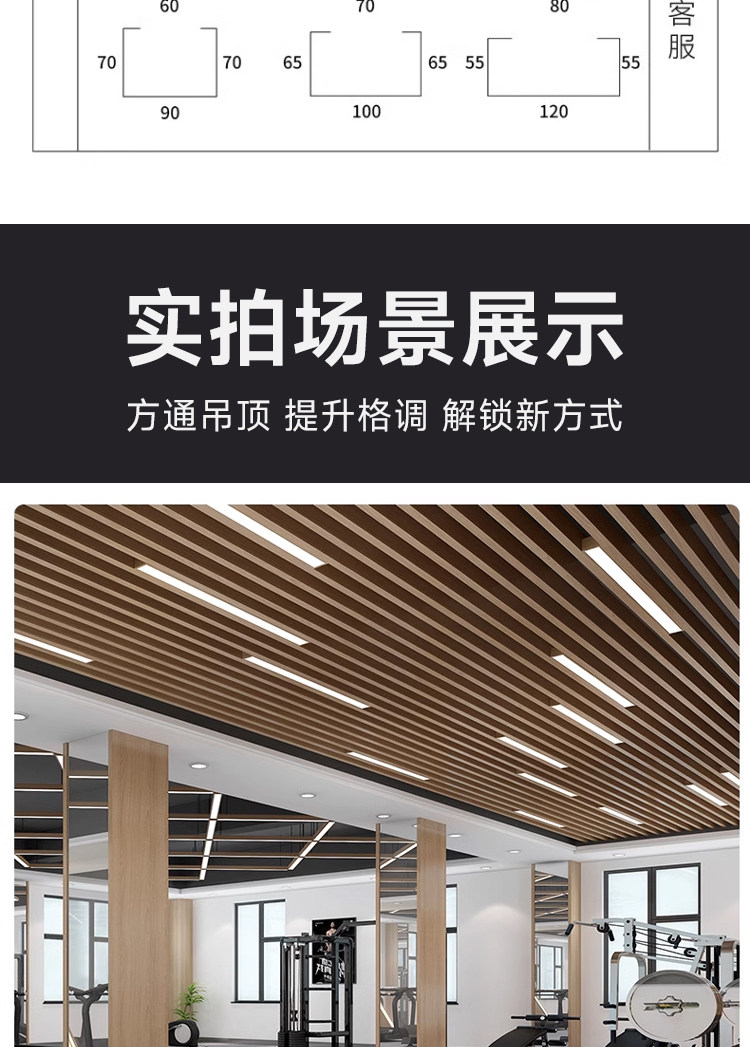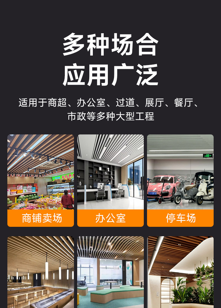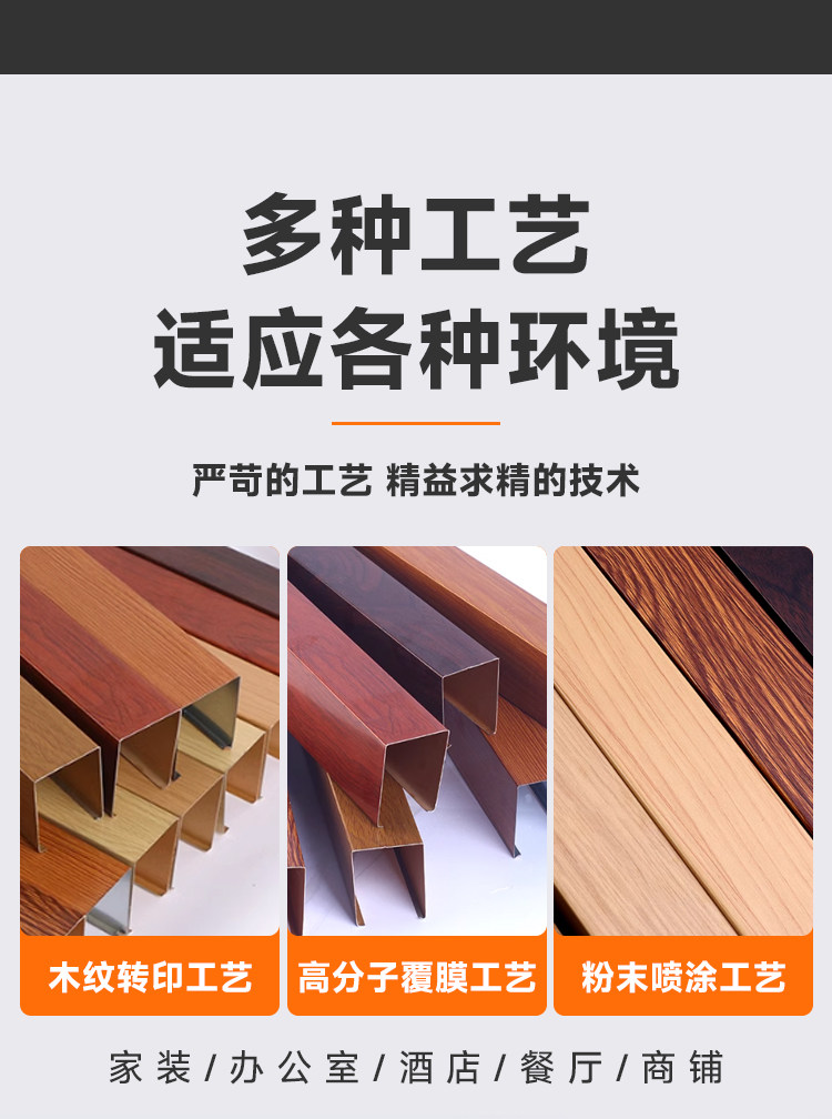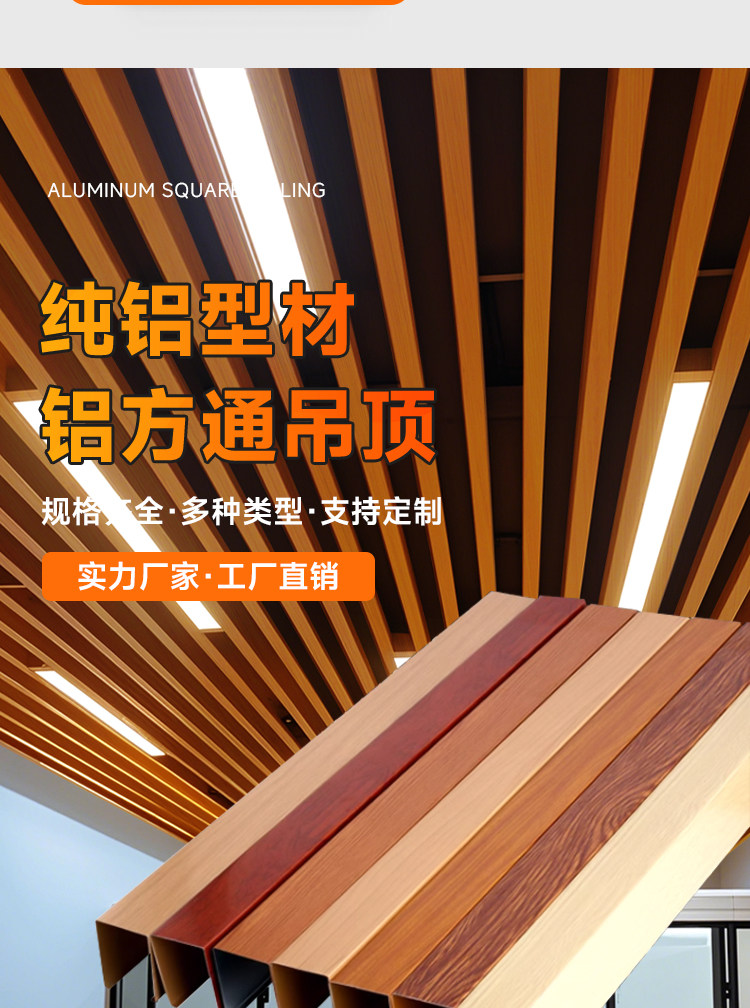 吊顶装修材料型材木纹u形铝方管格栅式隔断办公室吊顶天花板自装